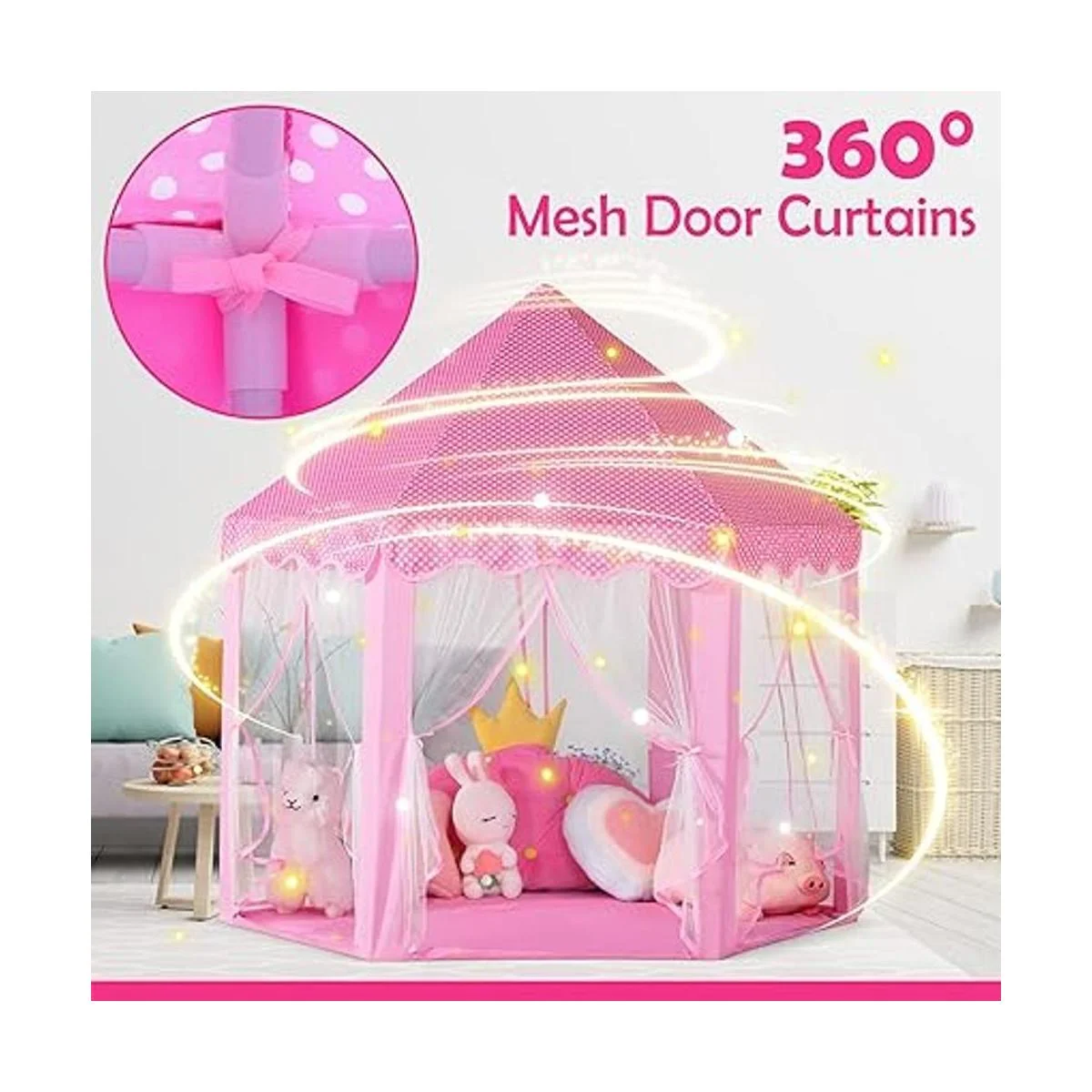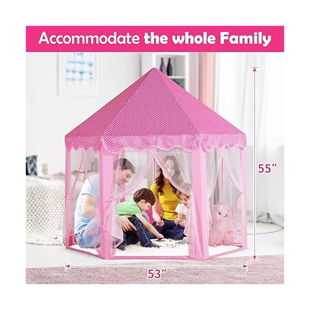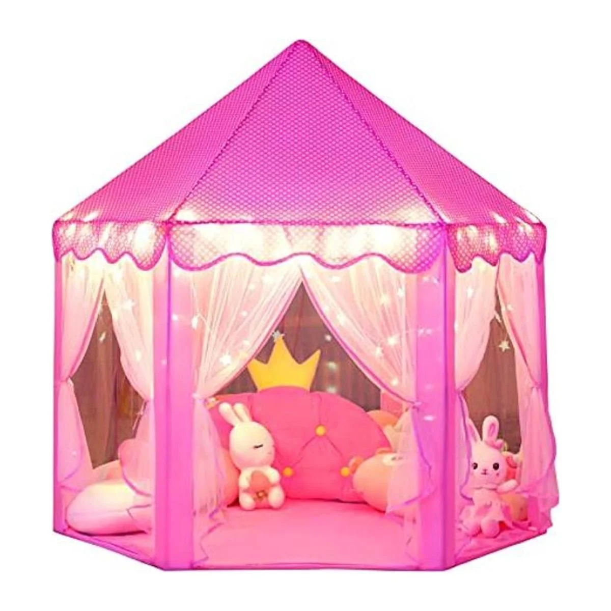 wilwolfer tienda de campaña tipo castillo de princesa para niñas, tienda de campaña hexagonal grande para jugar, casa de juegos con luces de estrella, para juegos en interiores y exteriores, color rosa