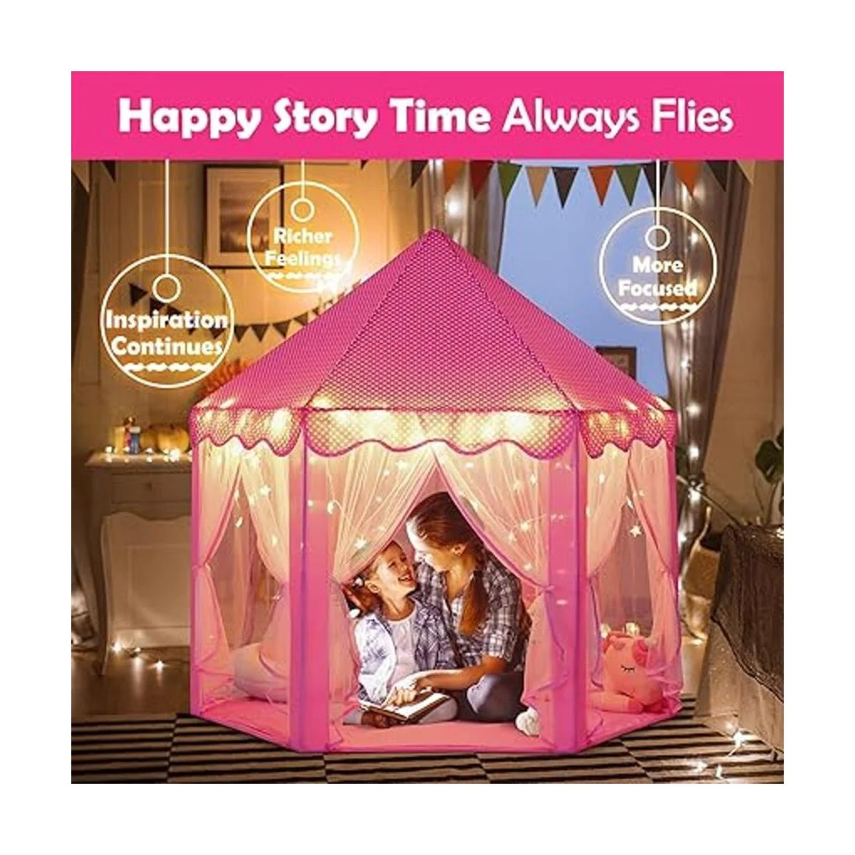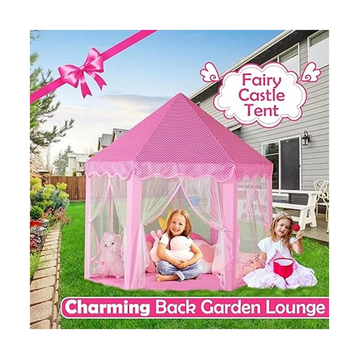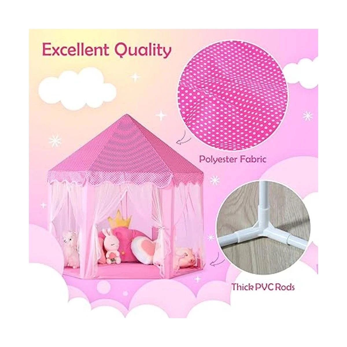wilwolfer tienda de campaña tipo castillo de princesa para niñas, tienda de campaña hexagonal grande para jugar, casa de juegos con luces de estrella, para juegos en interiores y exteriores, color rosa