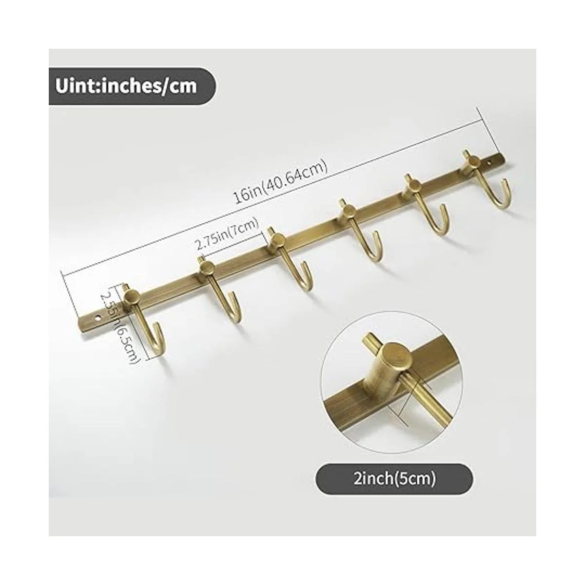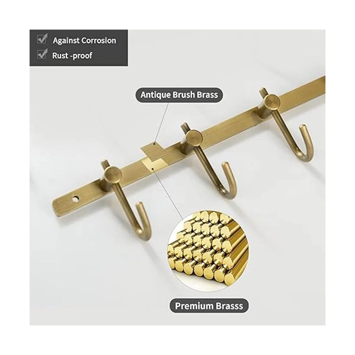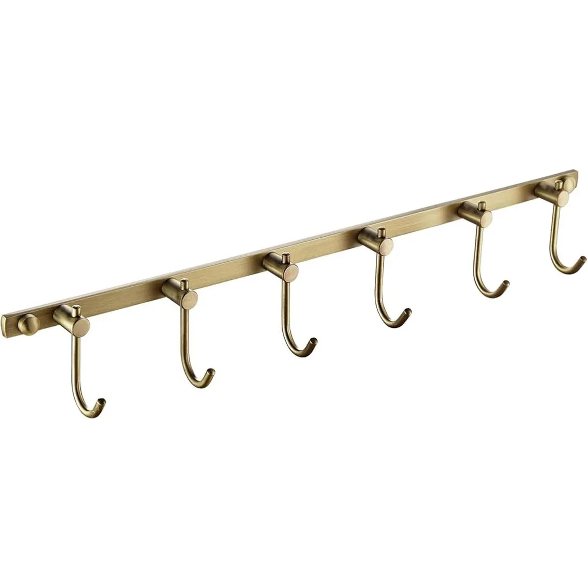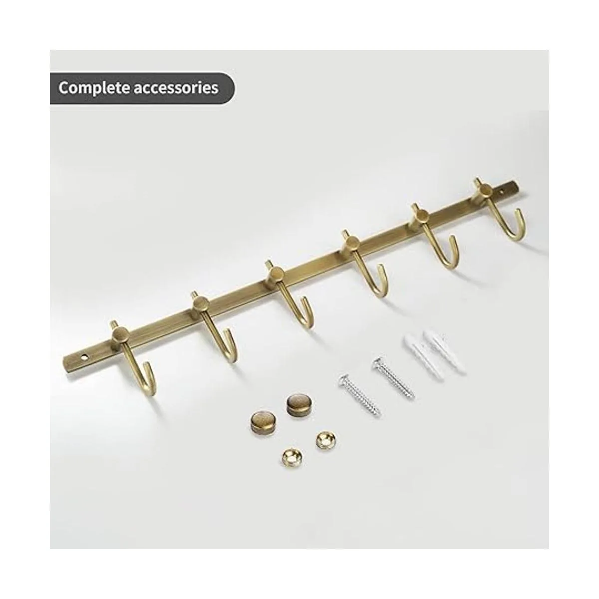WINCASE Gancho de latón, ganchos para toallas de baño, perchero, gancho de pared de baño antiguo montado en latón cepillado, 6 ganchos