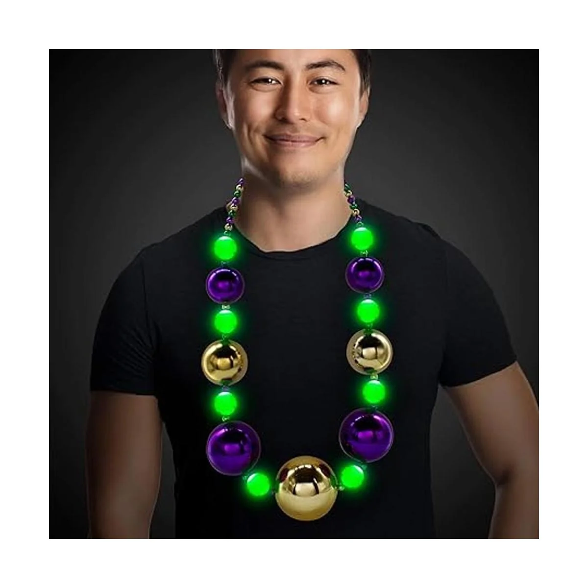 Incluye: 1 collar de cuentas jumbo de Mardi Gras con luz de 44 pulgadas