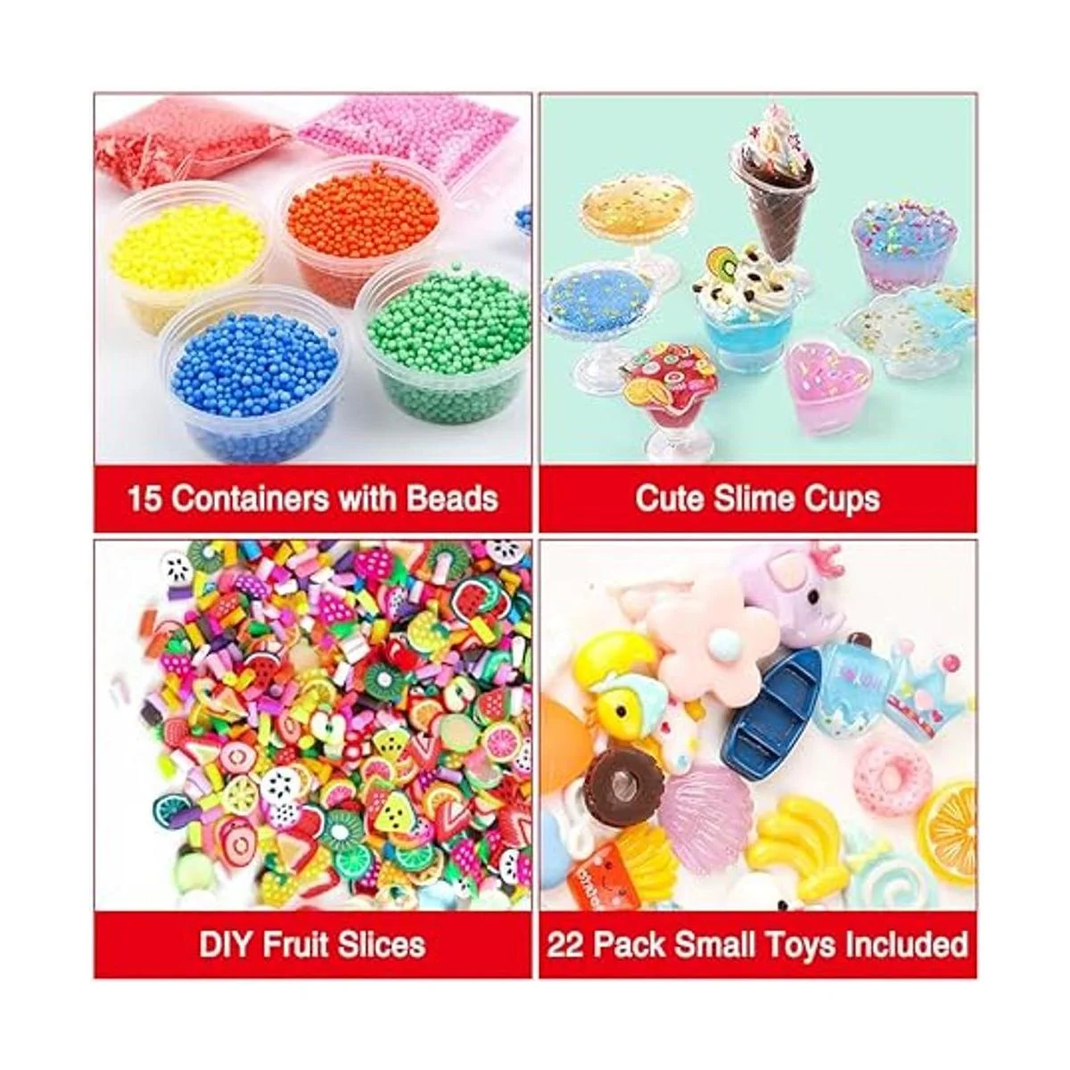 WINLIP Kit de suministros de slime, paquete de 205 unidades para niños y niñas, incluye bolas de espuma, purpurina, cuentas de pecera, dijes, recipientes transparentes