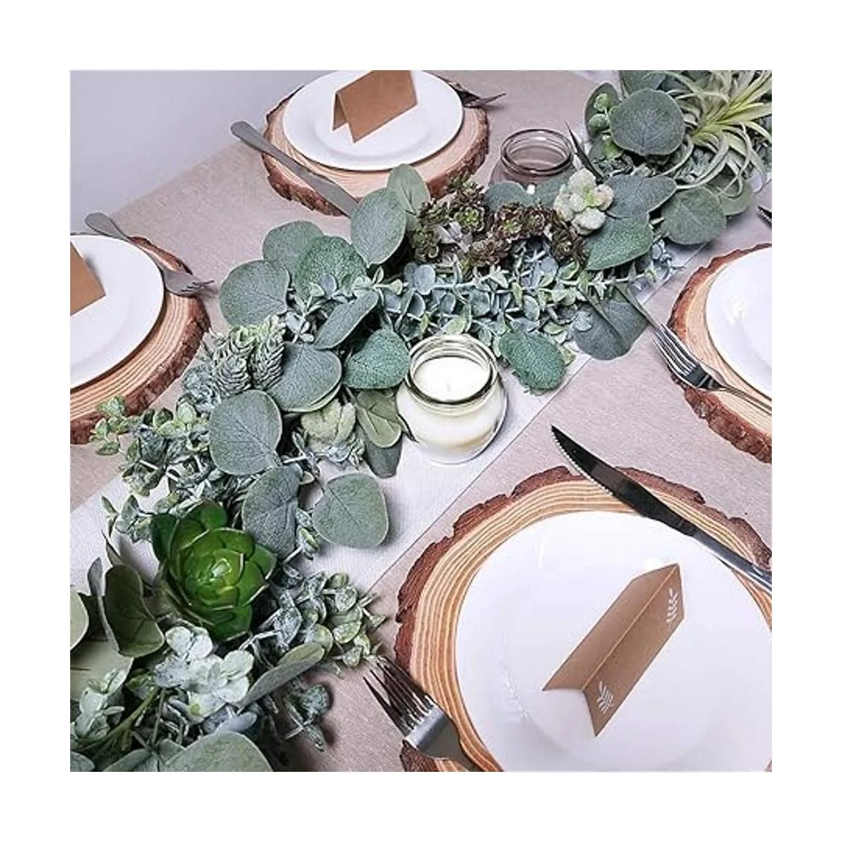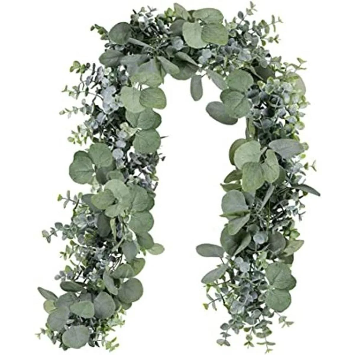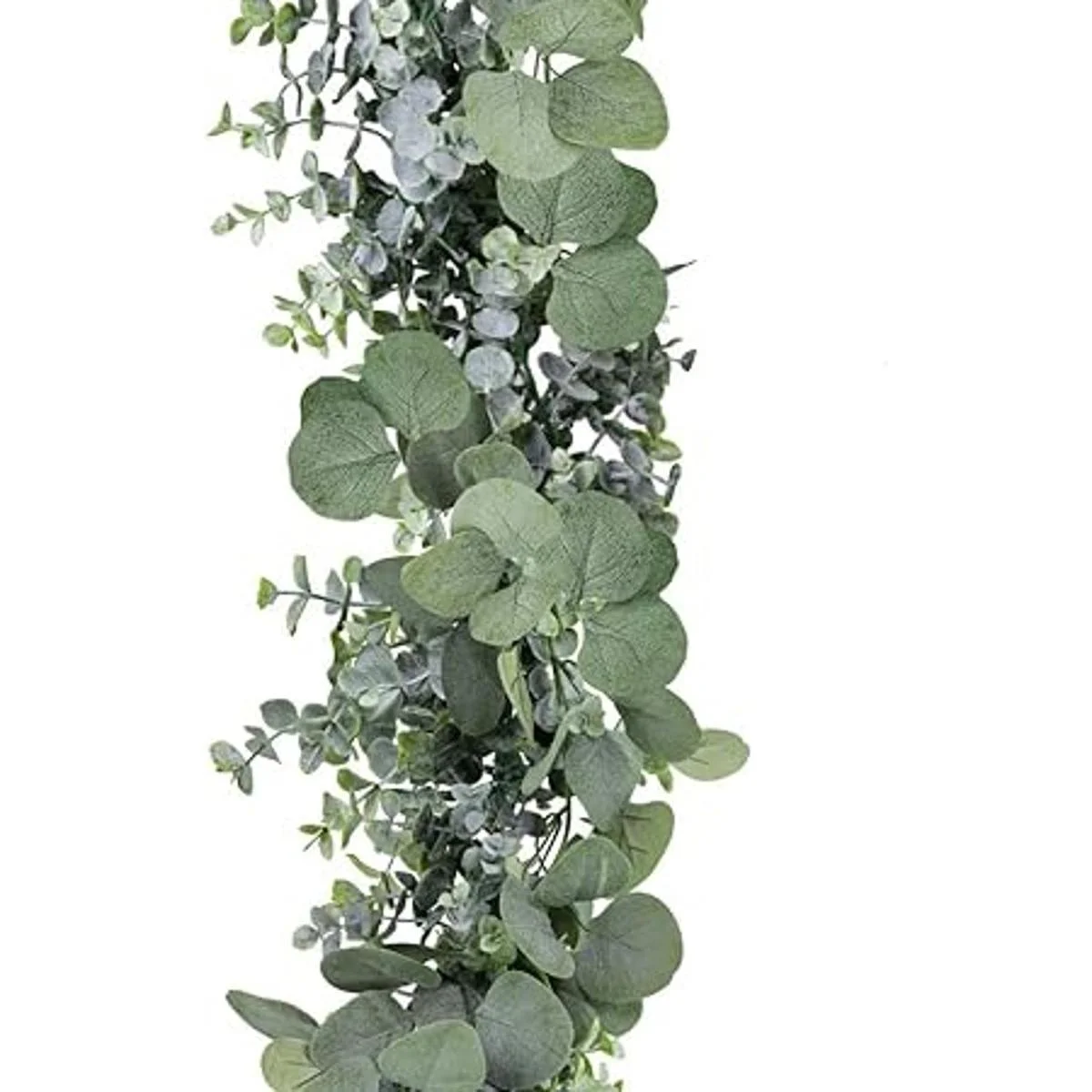 Guirnalda de hojas de eucalipto artificiales de 5.9 pies de largo, guirnalda de eucalipto de plata en mezcla gris y verde. No se marchitan ni se decoloran y son fáciles y ligeros para bodas de destino