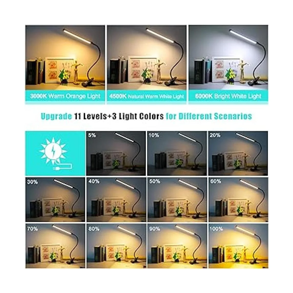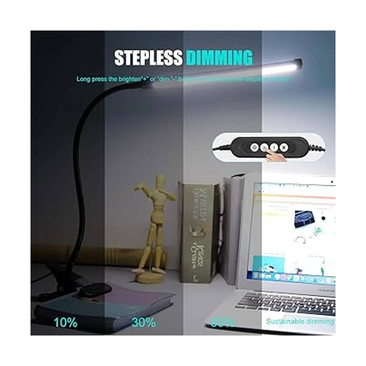 Winmor Lámpara de escritorio LED con clip, 3 colores 11 de brillo, 64 luces LED de 10 W, enchufe USB, atenuador automático sin pasos, luces de escritorio para mesita de noche, computadora, oficina en casa