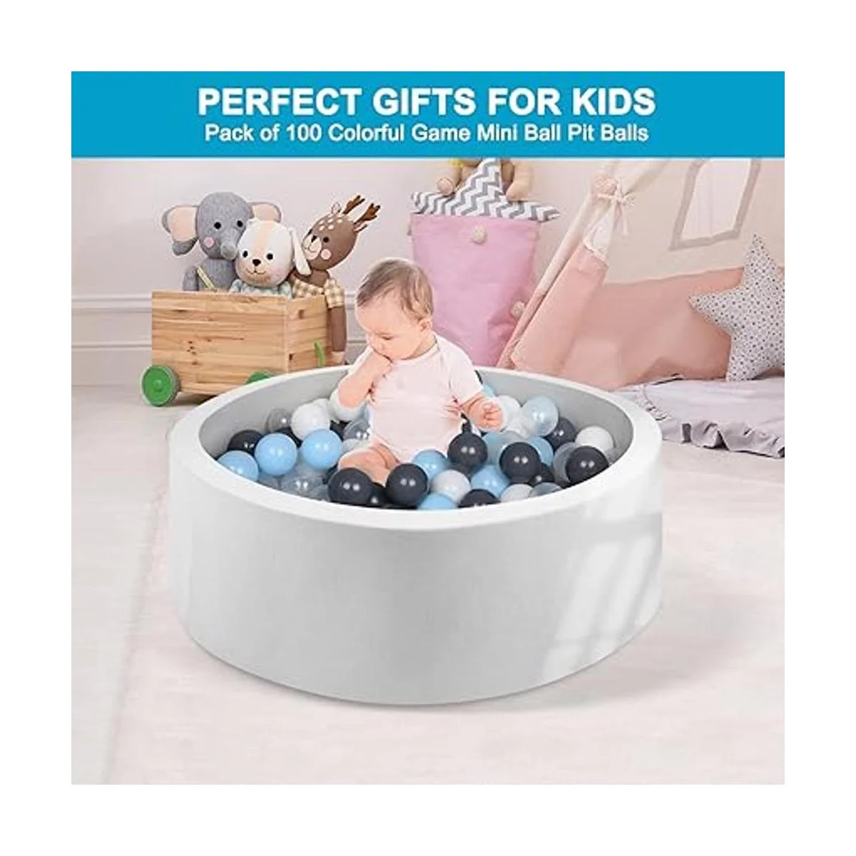 WINTECY Paquete de 100 bolas de plástico, 2.2 pulgadas2.2 in, sin BPA, bolas oceánicas a prueba de aplastamiento, sin ftalatos para niños y niñas, interiores y exteriores, azul macarón, gris, blanco, transparente