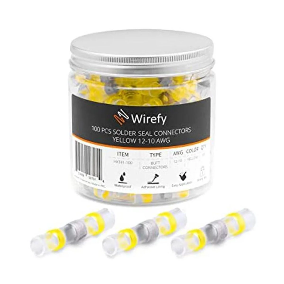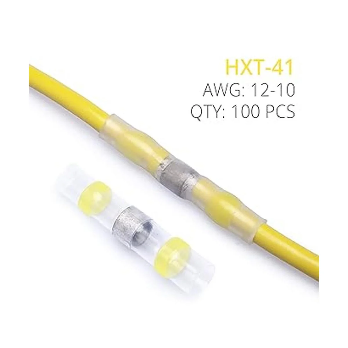 Wirefy 100 conectores de alambre de sellado de soldadura, conectores de extremo de soldadura termorretráctiles, mangas de soldadura impermeables, conectores de alambre autosoldante, color amarillo, 1210 AWG