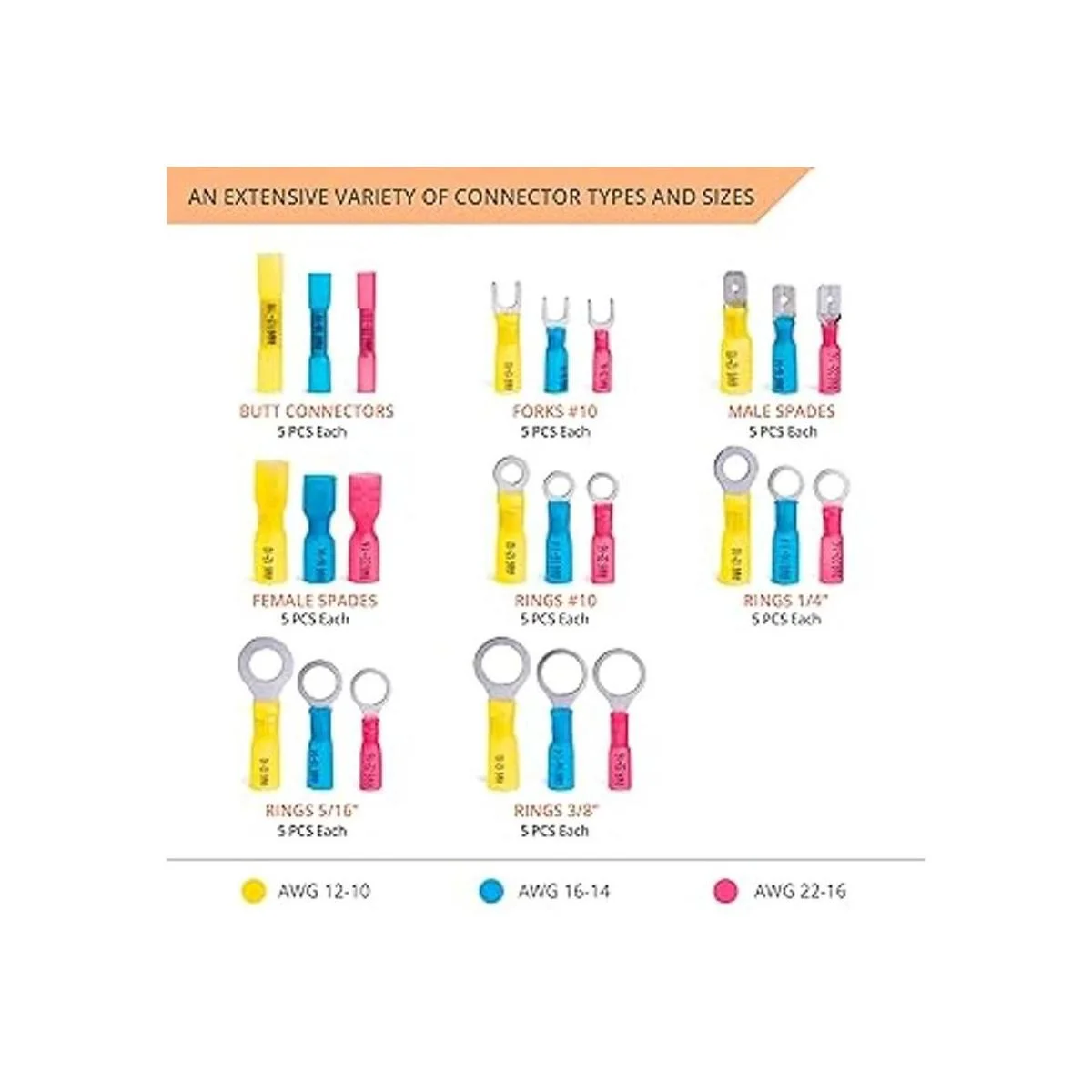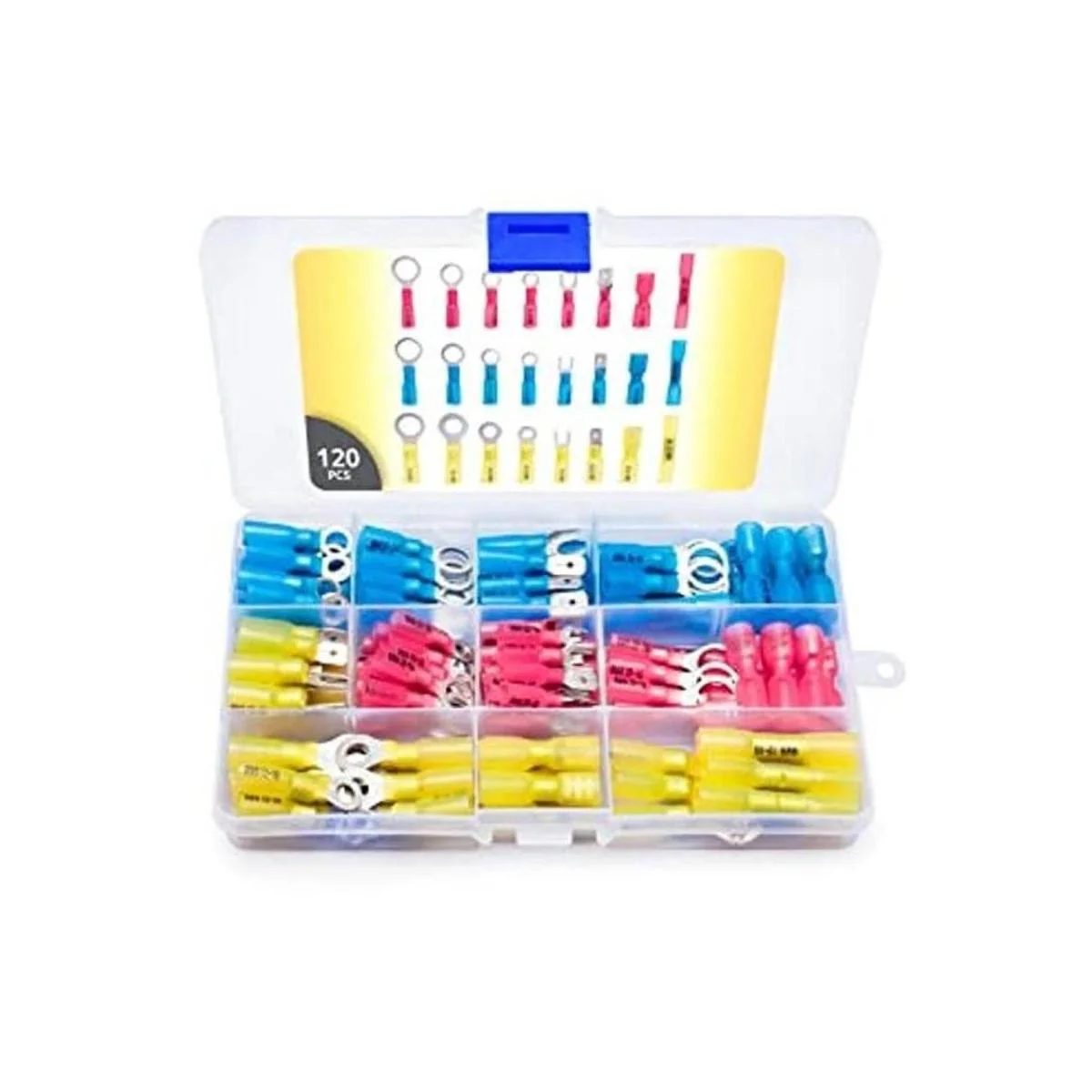 Wirefy conectores de cables termocontraíbles, 120 unidades, kit de terminales eléctricos, surtido de conectores de crimpado marino automotriz, anillo, horquilla, gancho, pala, empalmes a tope.