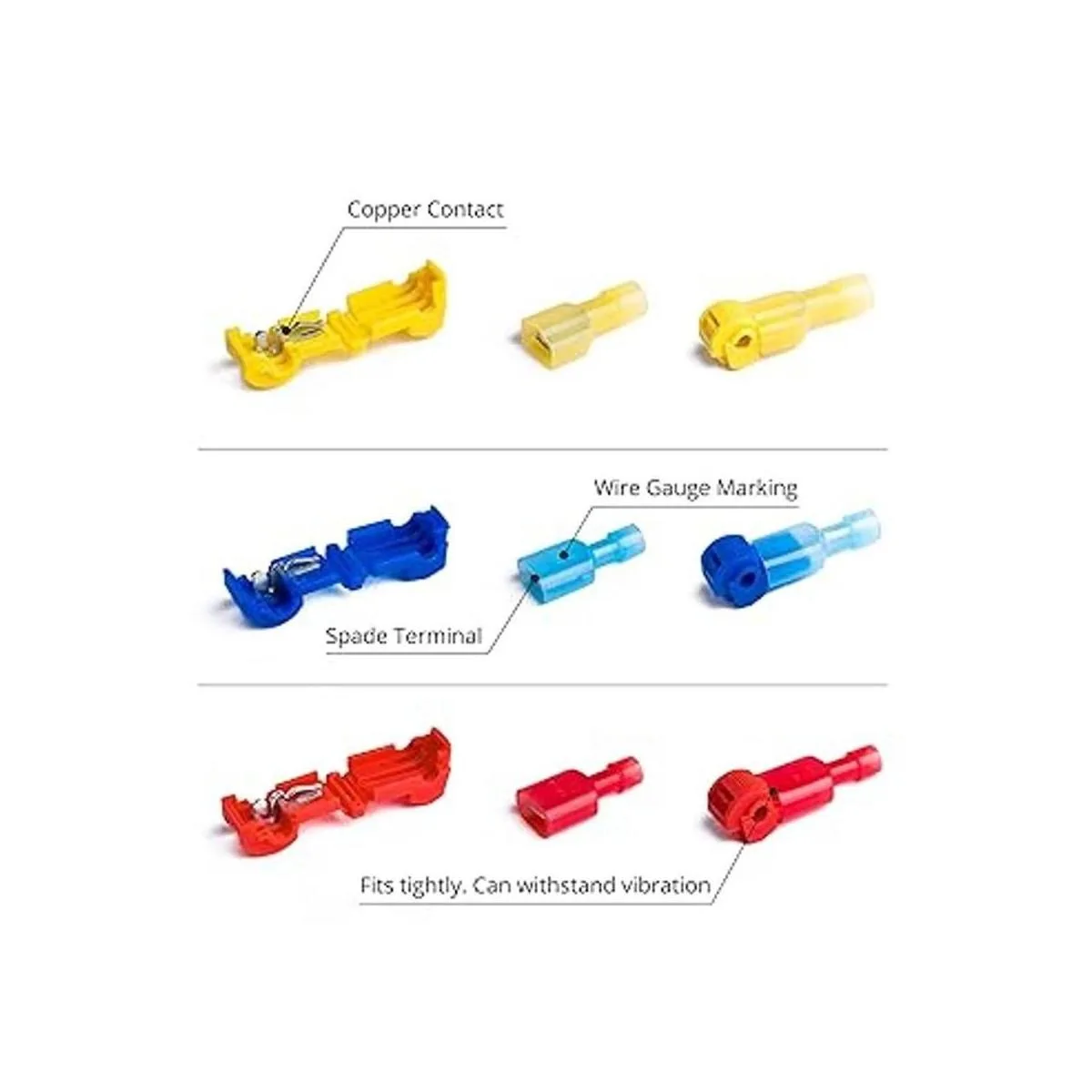 Wirefy Kit de conectores de cable de grifo T Kit de conectores eléctricos Terminales de pala Grifos de alambre de desconexión rápida 120 unidades 2210 AWG