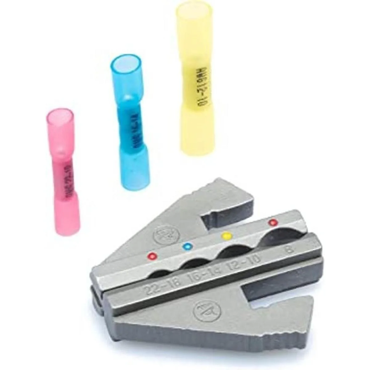 Diseñado para conectores de culata termorretráctiles un troquel de engaste más estrecho con bordes lisos que permite engarzar conectores termorretráctiles de forma más eficiente. Funciona con conectores de 228 AWG.