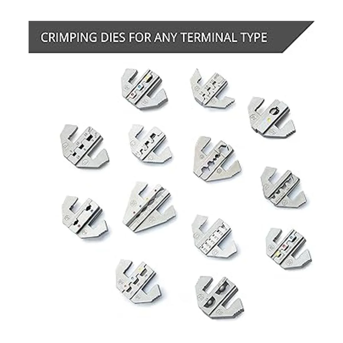 Ahorra tiempo y dinero: utiliza múltiples troqueles de engaste con una sola herramienta de crimpado. Crea tu propio juego de herramientas de crimpado versátil.