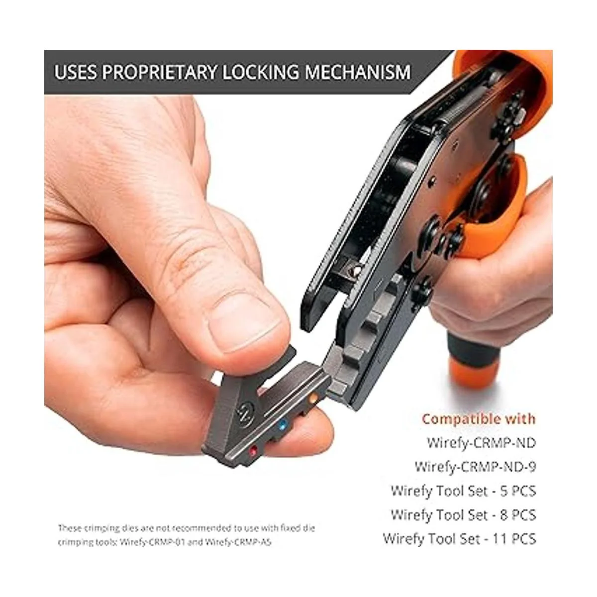 Compatibilidad: los troqueles de engaste individuales funcionarán con herramientas de engaste Wirefy con mecanismo de bloqueo de cambio rápido. Estos troqueles no son compatibles con las herramientas de crimpado de troquel fijo.