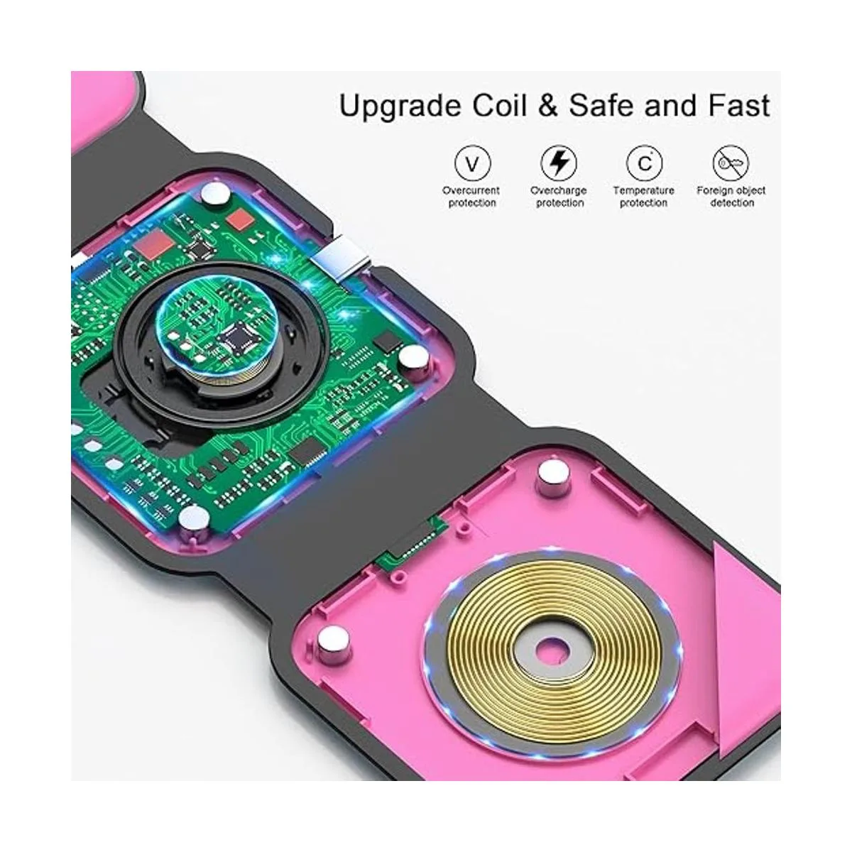 Pay Attention to Family Health: Many other phone wireless charging station do not take antielectromagnetic measures, and internal radiation will spread, causing harm to the human body. This folding charger uses a professional magnetic isolation sheet inside, no radiation leakage, the elderly and children can use it with no worry. This wireless charging station for apple products strive to protect the safety of you and your family.