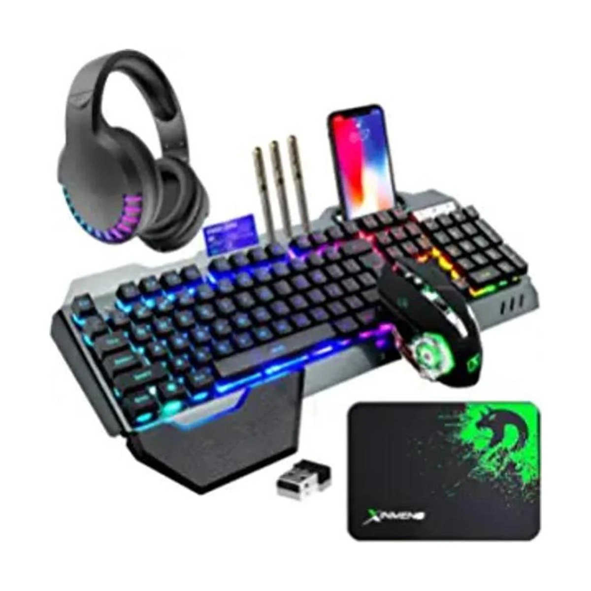 4 in 1 Rechargeable Keyboard Mouse and Headset Kit This upgraded wireless keyboardmouse combo with Bluetooth headphone is made of premier sturdy and durable material with large capacity builtin batteryKeyboard:4000 mAh, Mouse:800mAh, Headphone:1000mAh, ensure a long battery lasting working time, decreases the frequency of charging, and the keyboard is designed with save power function and will auto enter sleep without operation in 3 minutes, press any key can wake it up.