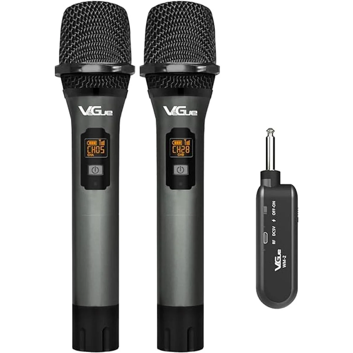 Wireless Microphone, VeGue UHF Cordless Dual Handheld Dynamic Mic Set with Rechargeable Receiver, for Karaoke Party, Voice Amplifier, PA System, Singing Machine, Church, Wedding, Meeting, 200ft WM2