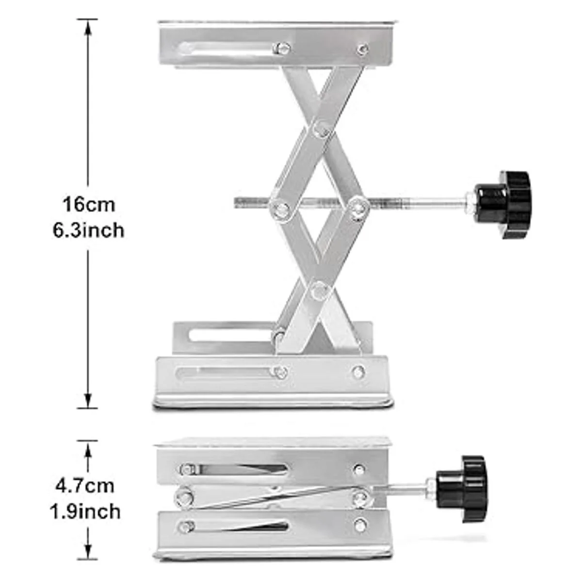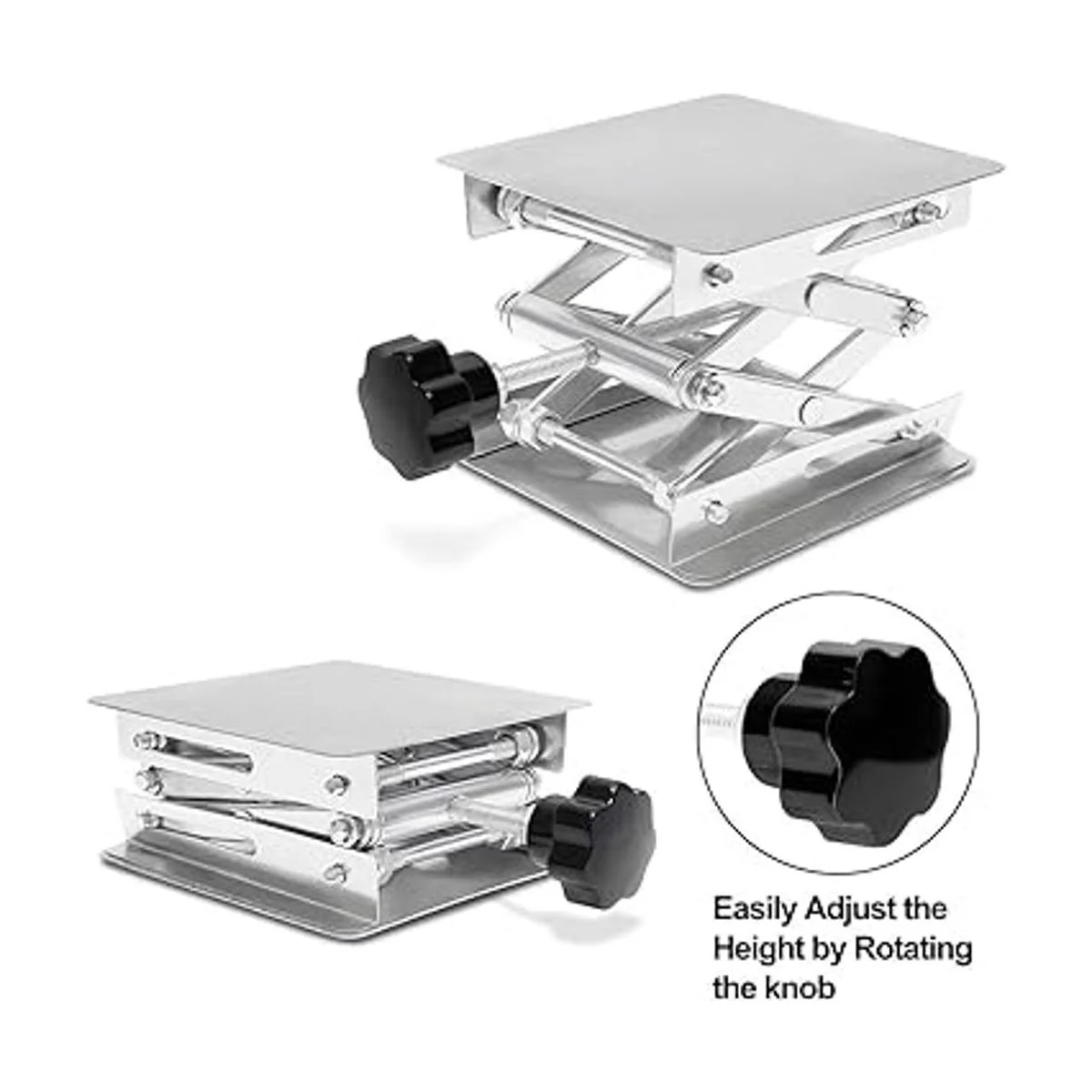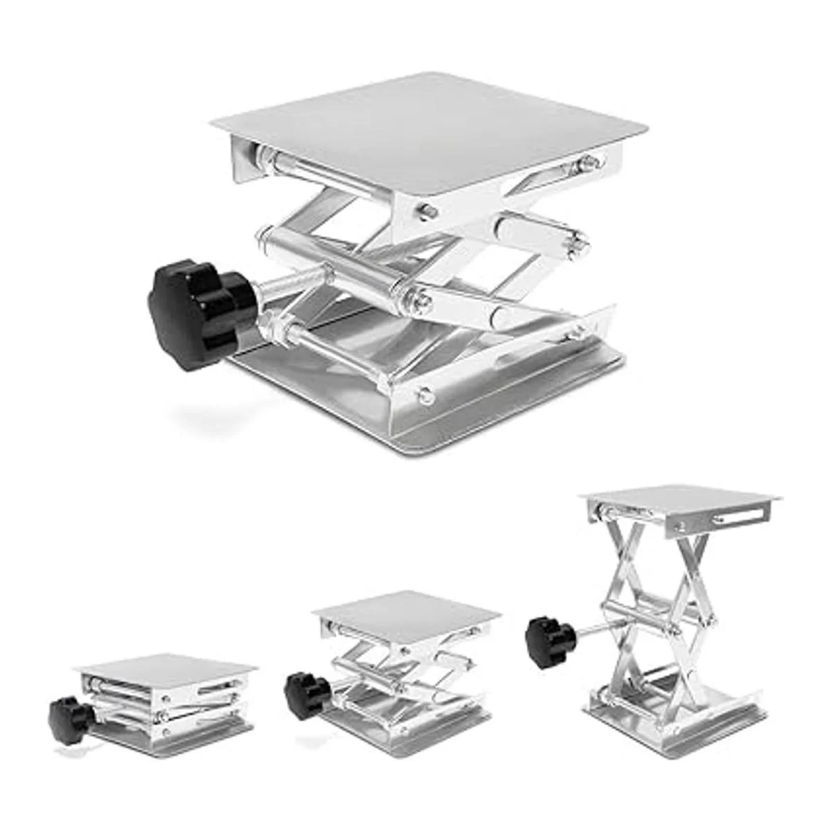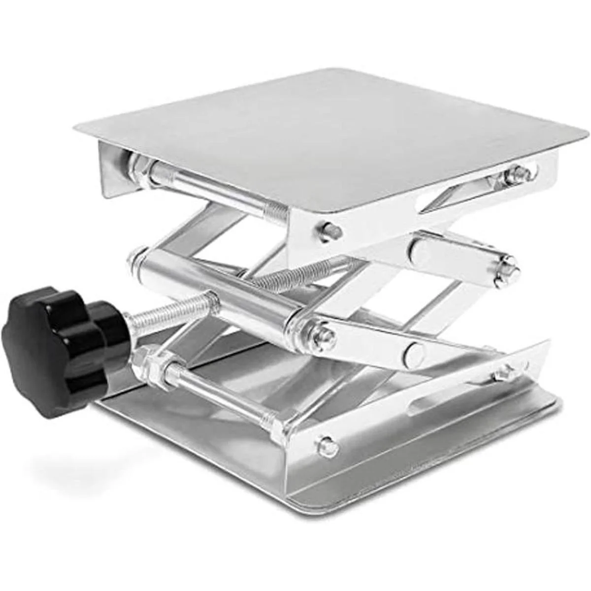 Wisamic Plataforma de soporte de tijera de laboratorio de 4 x 4 pulgadas, soporte de elevación de acero inoxidable, soporte de laboratorio