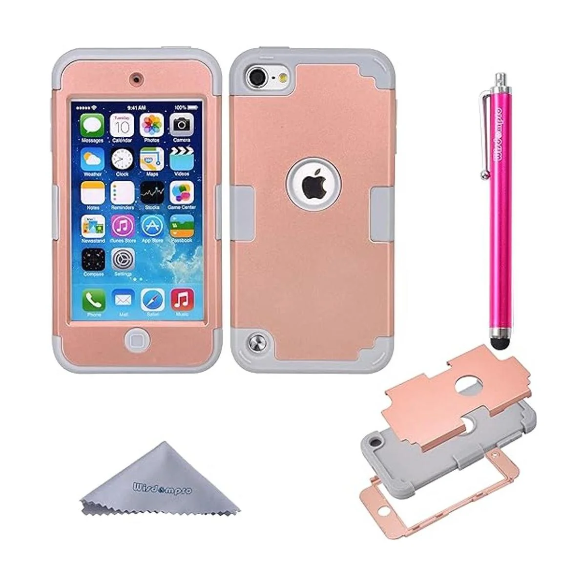 Wisdompro Funda para iPod Touch 7, para iPod Touch 6, iPod Touch 5, resistente 3 en 1, funda protectora híbrida a prueba de golpes, con protector de pantalla para iPod Touch 765 generación, color oro rosagris