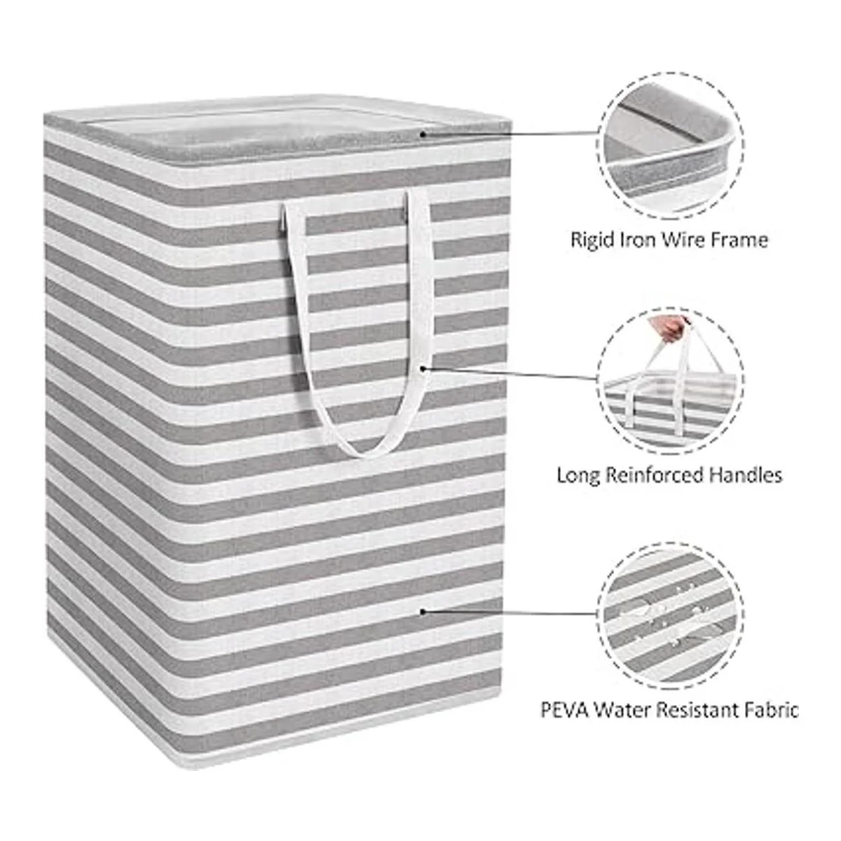 Diseño plegable La cesta plegable para la ropa sucia se puede plegar para ahorrar espacio cuando no está en uso. Ideal para dormitorios universitarios, campistas, apartamentos, uso de hotel, guarderías de bebé, lavadero y compras. Son ideales para organizar tus cosas y mantener tu habitación ordenada. Nota: simplemente utiliza un paño húmedo para limpiar la suciedad o enjuagar la suciedad con agua fría. No lavar en lavadora ni secadora.