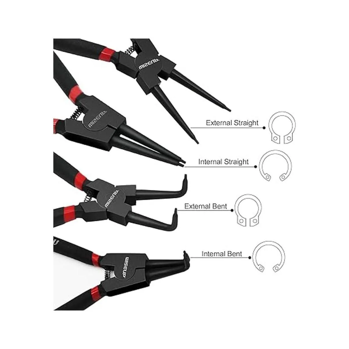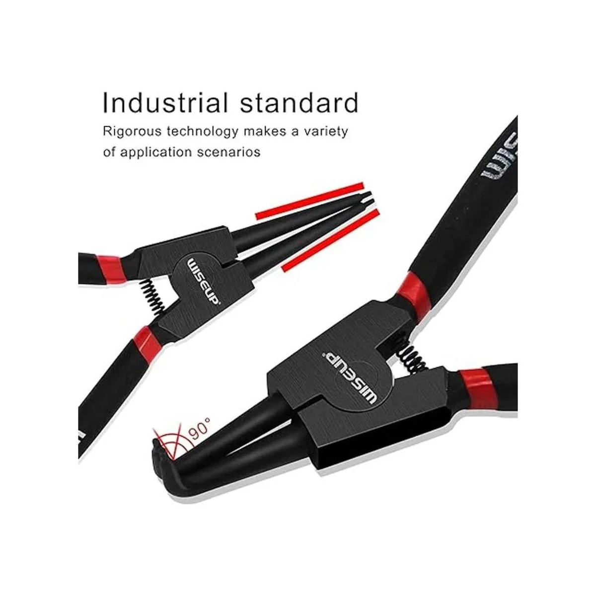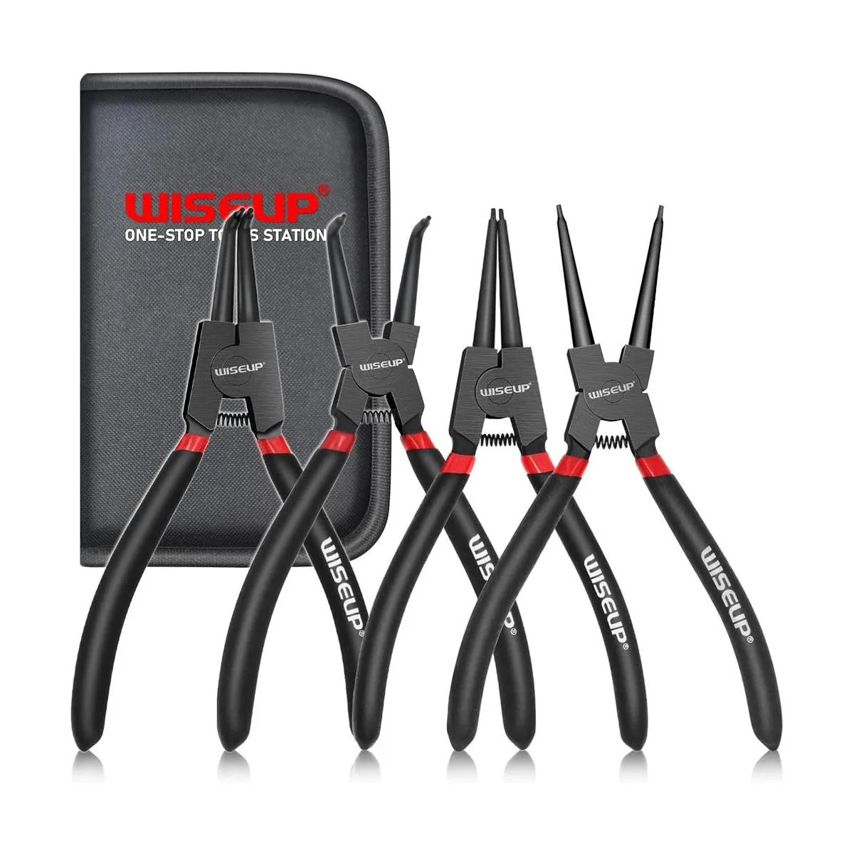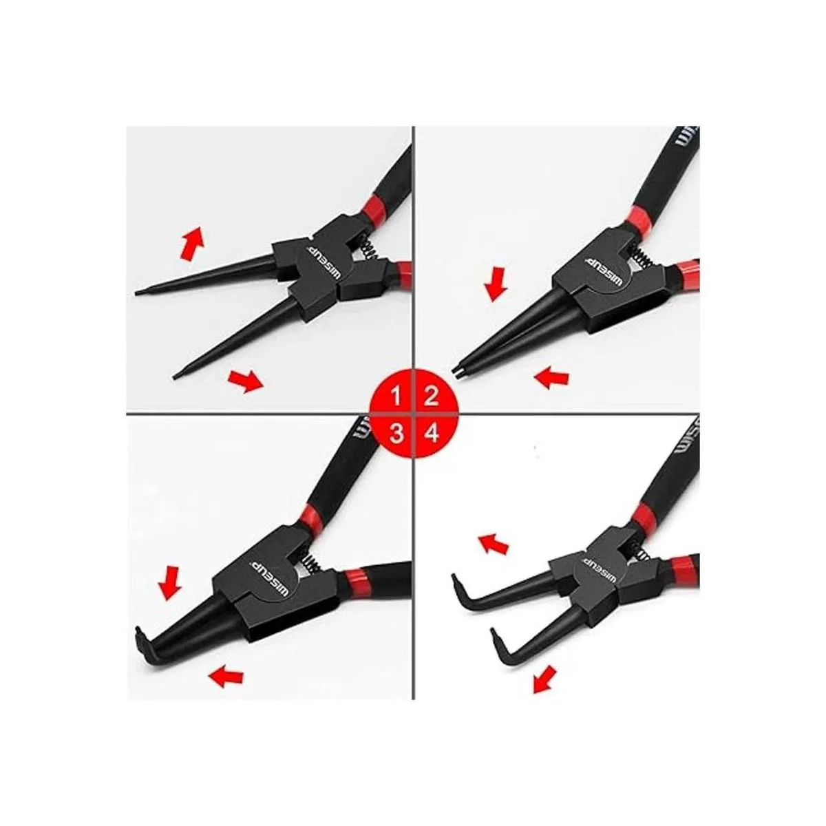 WISEUP Juego de alicates de anillo a presión resistentes, 4 piezas de 7 pulgadas diámetro de la punta, 120 pulgadas, kit de alicates internosexternos, puntas de alicates de mandíbula rectadoblada, alicates de clip en C para retención de removedor de anillos