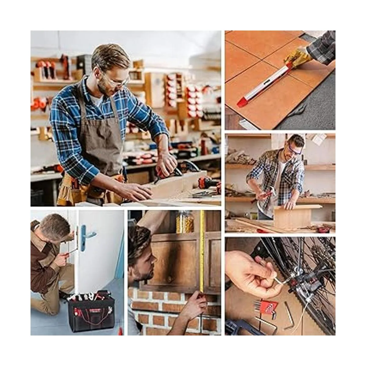 Bolsa de herramientas 600D resistente a la abrasión: esta bolsa de herramientas está hecha de tela de poliéster 600D que proporciona una durabilidad y fiabilidad inigualables. La doble tela con costuras finas de todo el cuerpo de la herramienta hace que la bolsa sea extremadamente resistente y duradera. No hay necesidad de preocuparse por que tu bolsa de herramientas se dañe o se rompa mientras está en uso.
