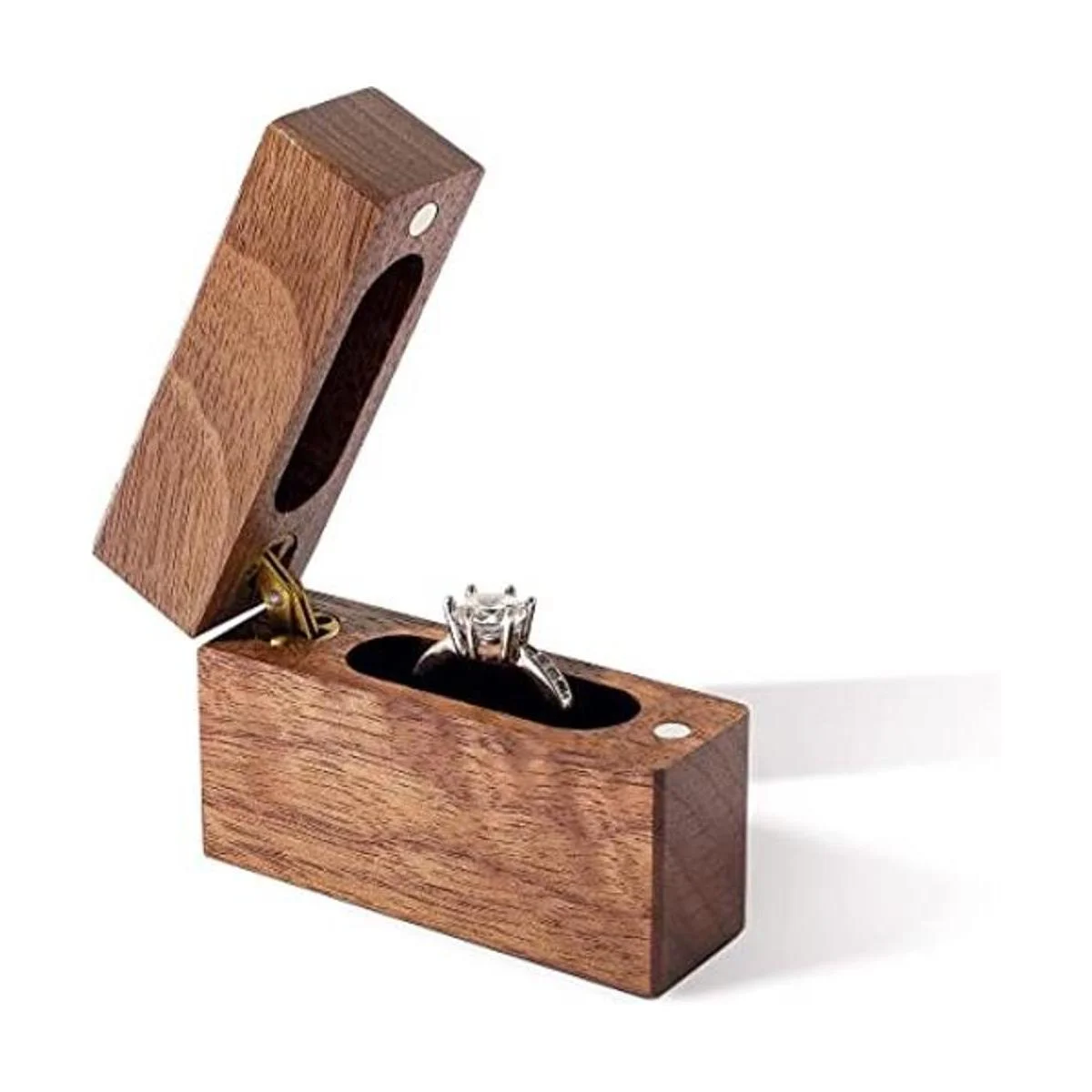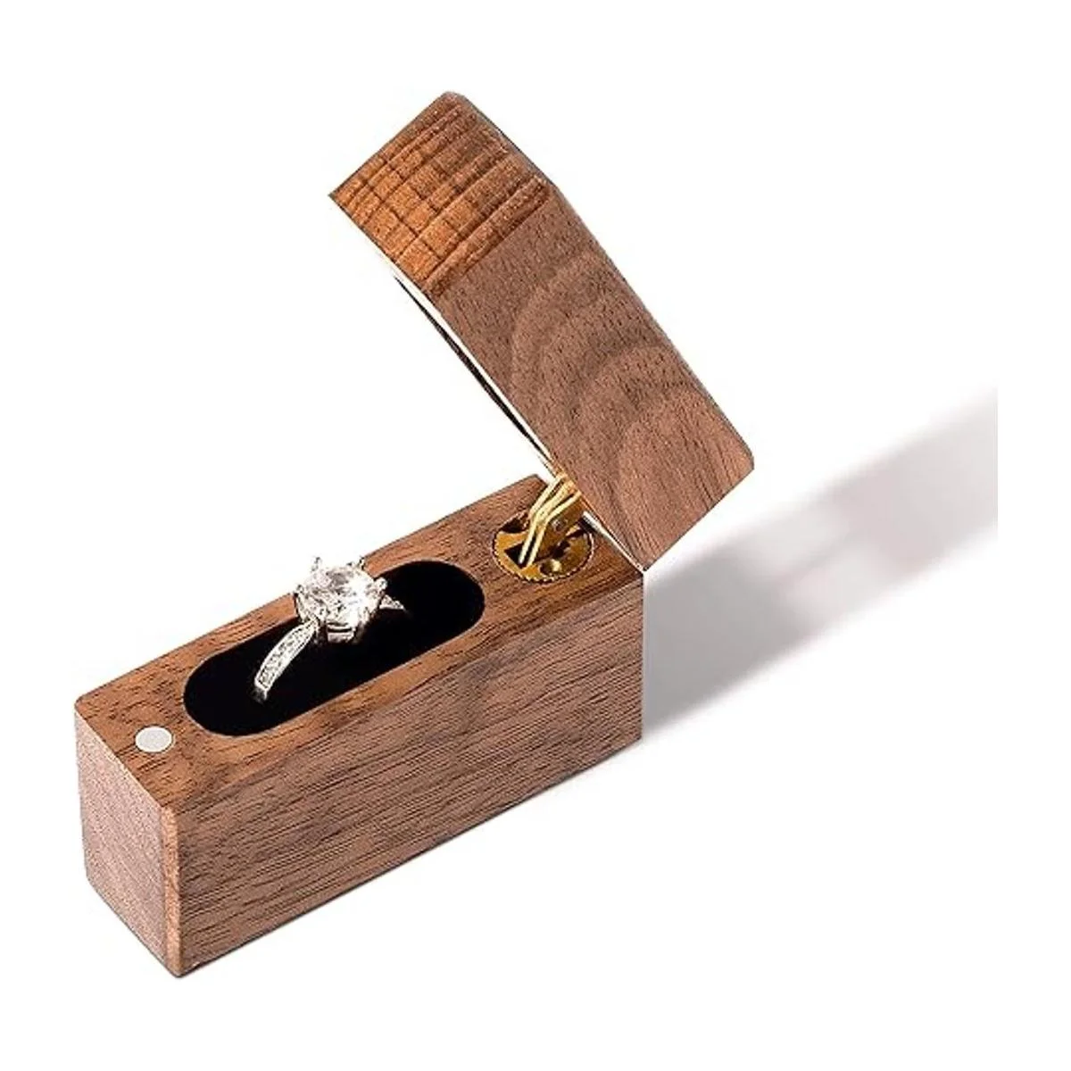 Wislist Caja de anillos de compromiso de madera pequeña y delgada para propuestas, boda madera de nogal