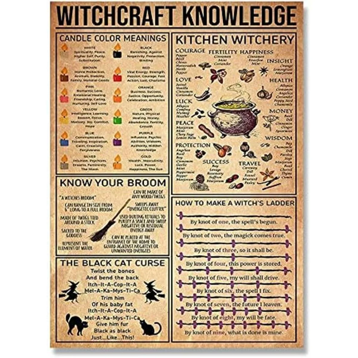 Witchcraft Knowledge Witch for Vintage Poster Carteles de metal de hojalata, placa de decoración de pared, bar, gato, club, novedad, divertido, baño, cocina, papel higiénico, retro, salón, cafetería, tienda, 8 x 12 pulgadas