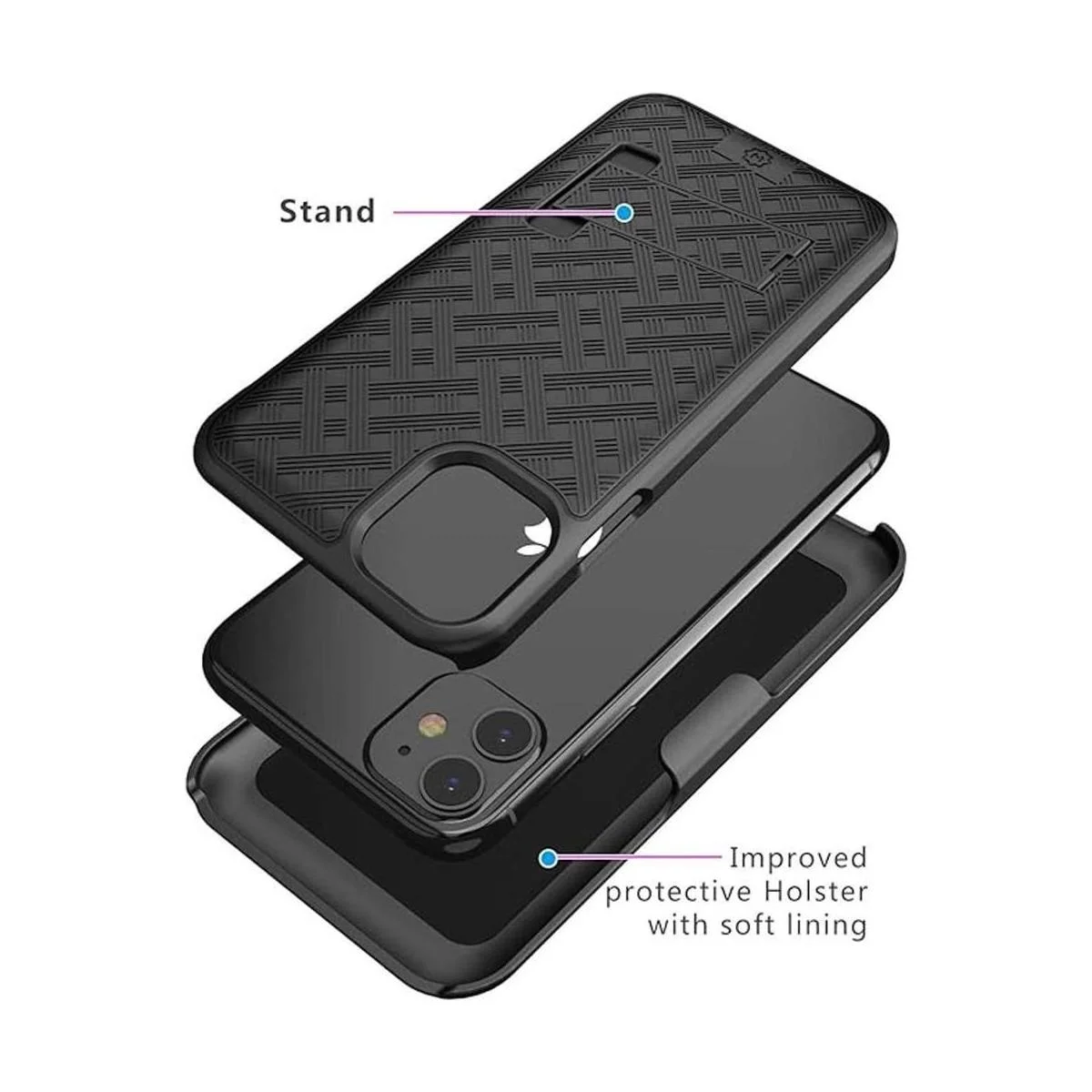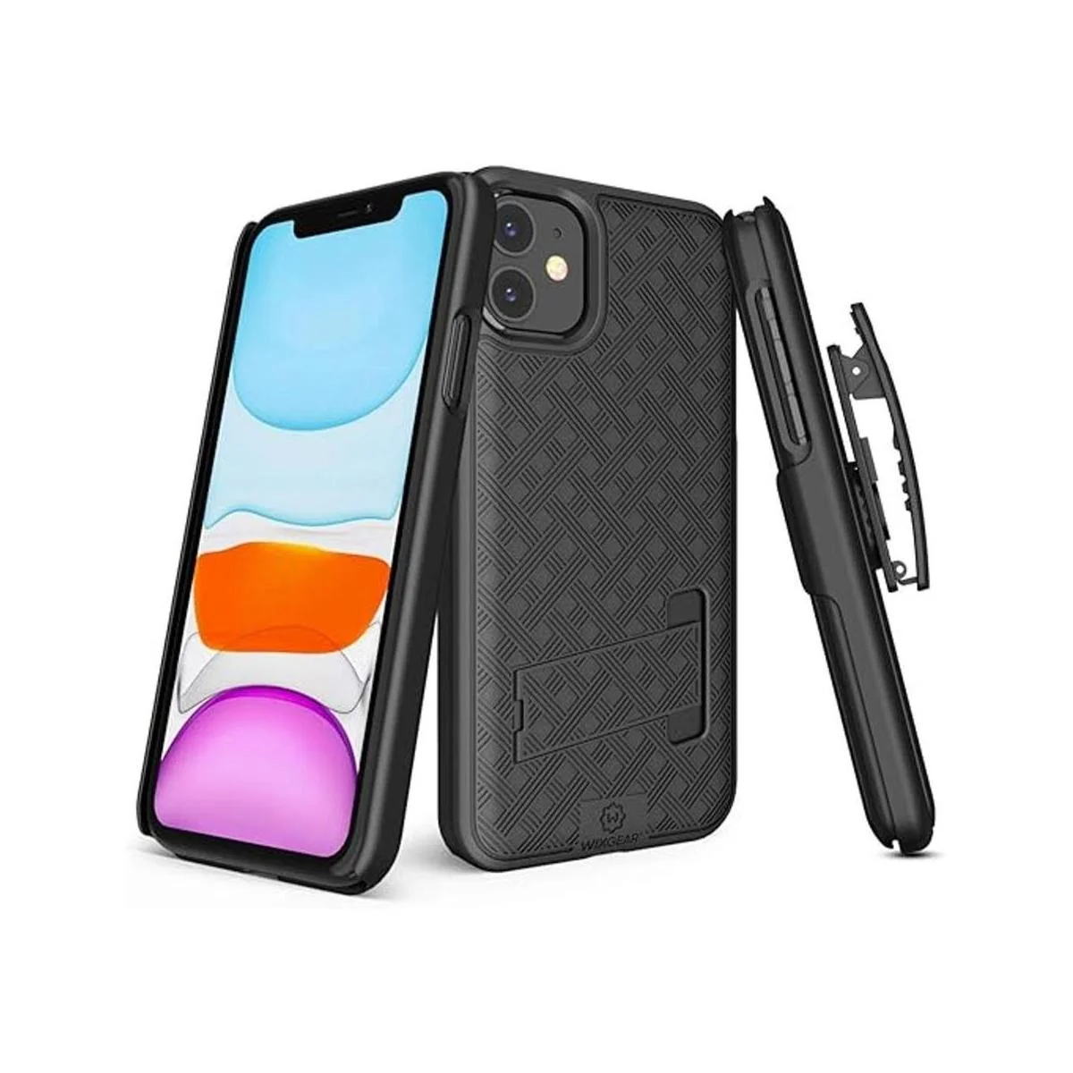 WixGear Funda para iPhone 11 con soporte y clip para cinturón, color negro