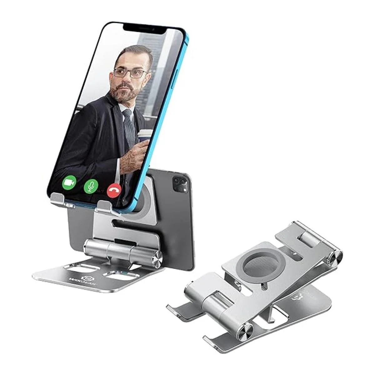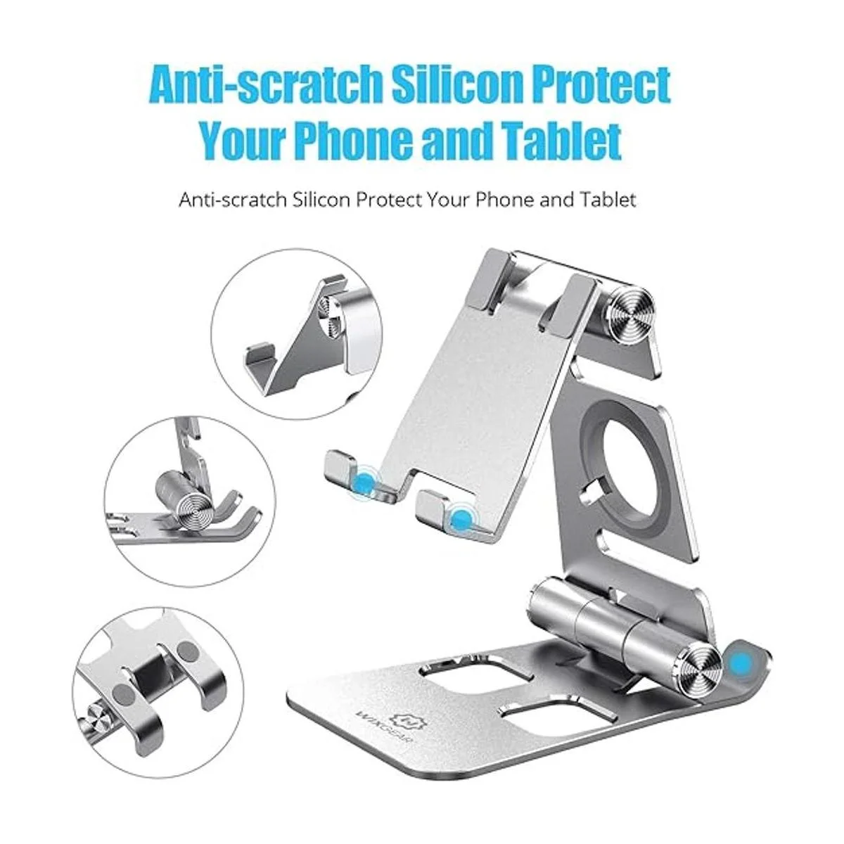 WixGear Soporte para teléfono celular y tablet, soporte plegable de aluminio 3 en 1 para tablet y teléfono celular, para soporte de escritorio y para Apple Watch con base antideslizante
