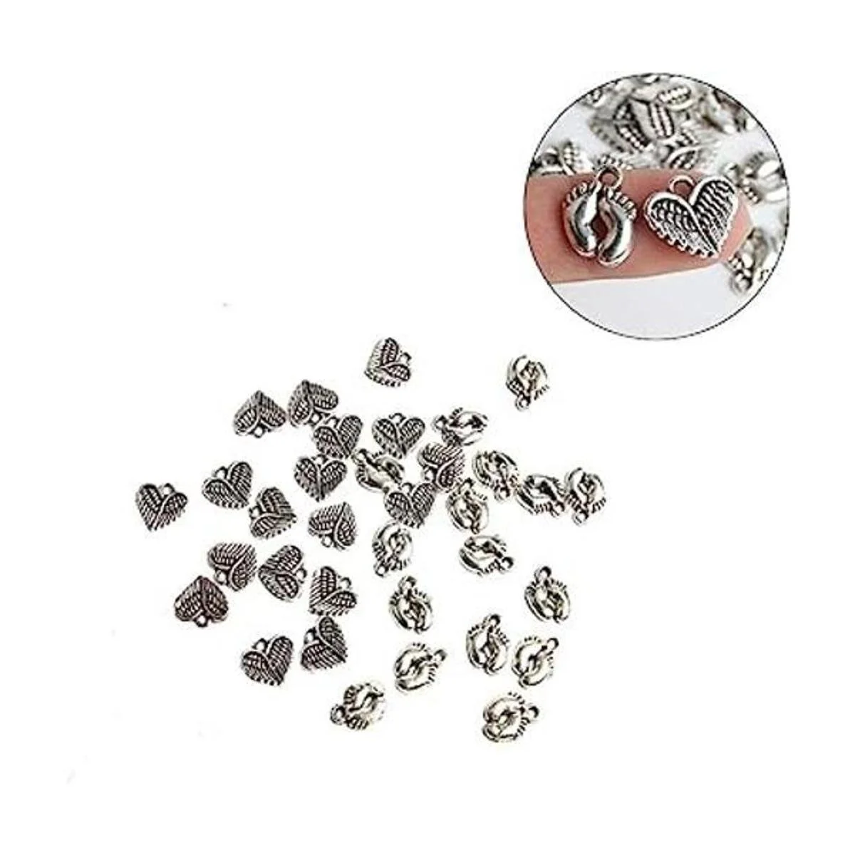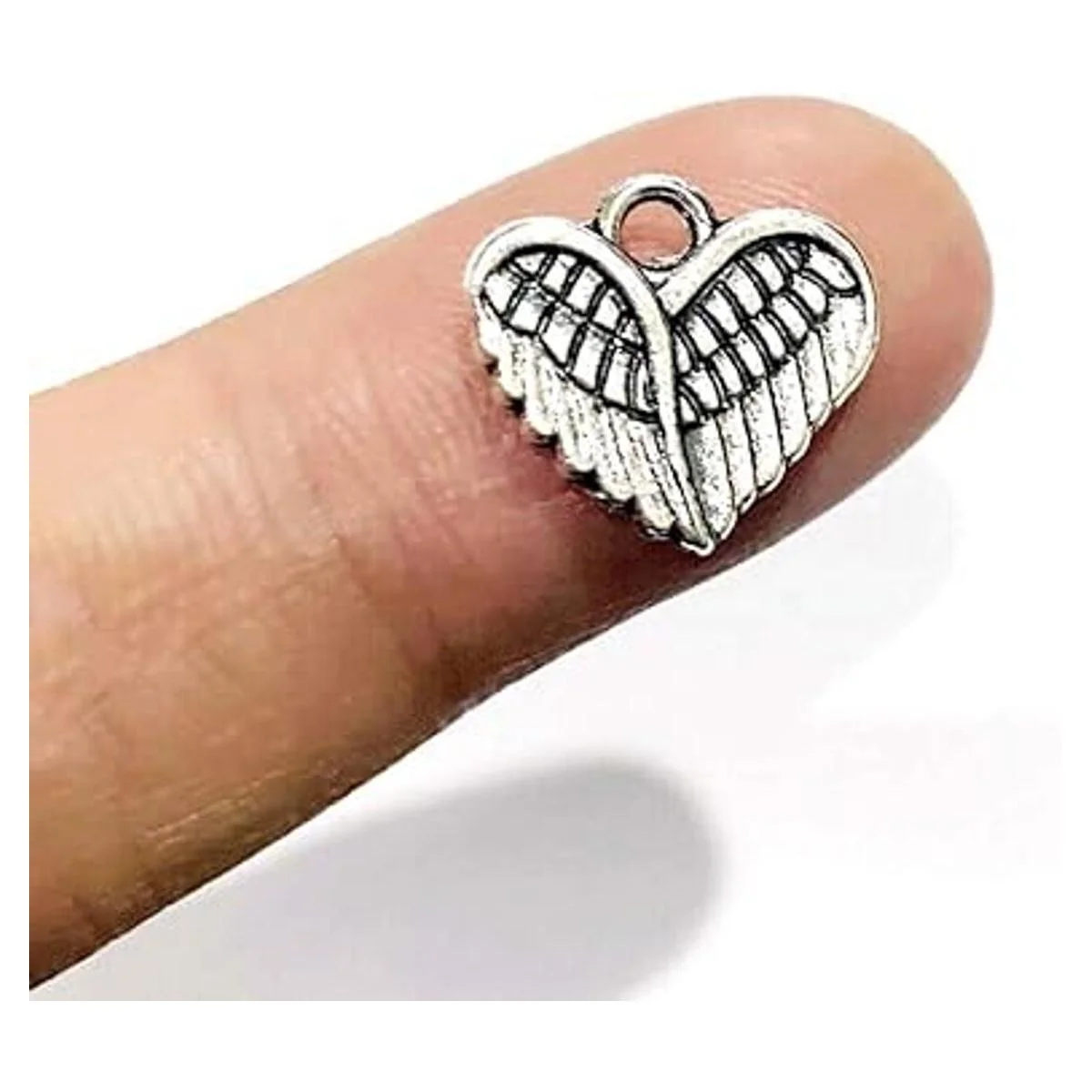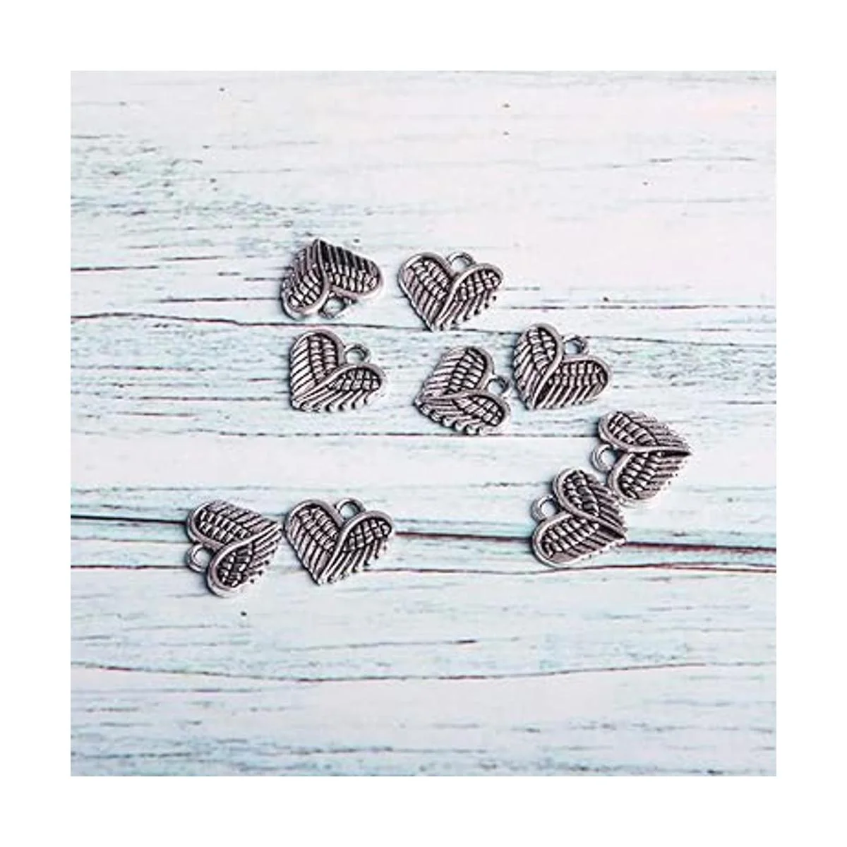 El paquete incluye: 100 cuentas con forma de corazón con alas de ángel para bebé, de color plateado envejecido si hay algún problema con el producto, por favor envíanos fotos. .
