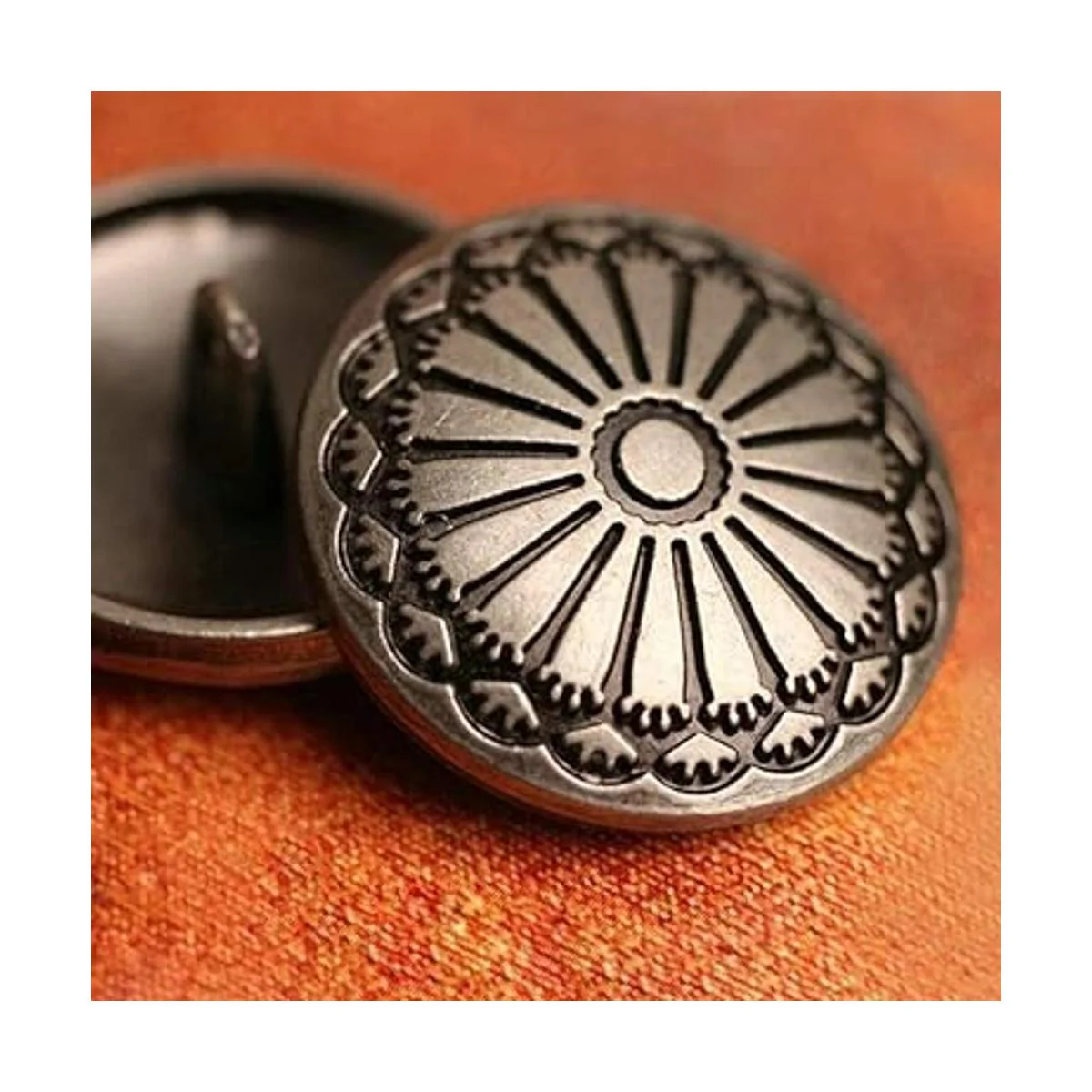 Botones de costura de metal plateado de 0.906 in de flor, para coser o chaqueta.