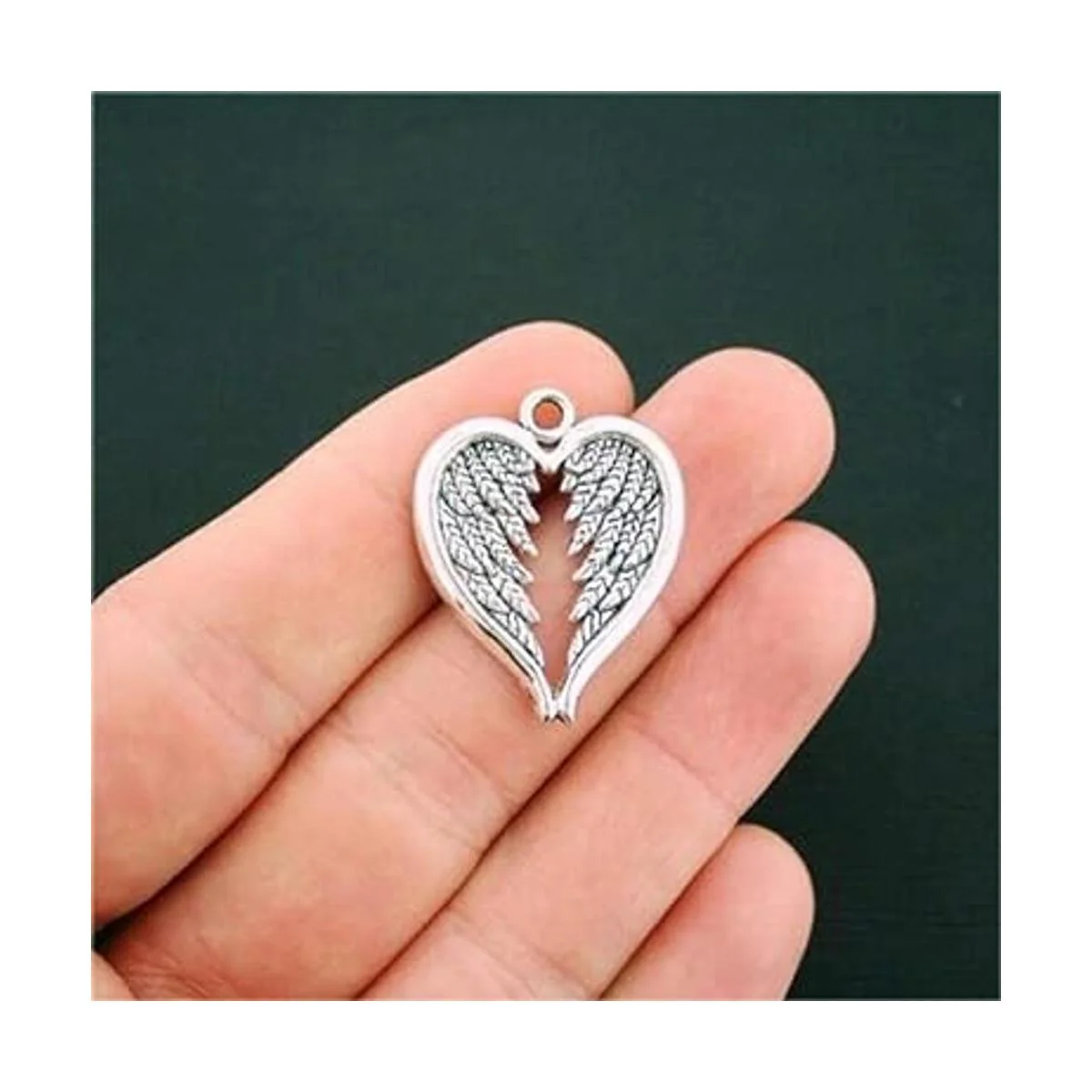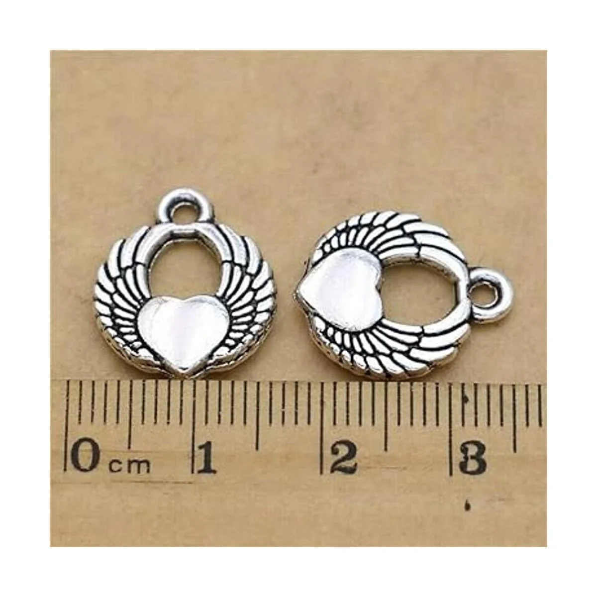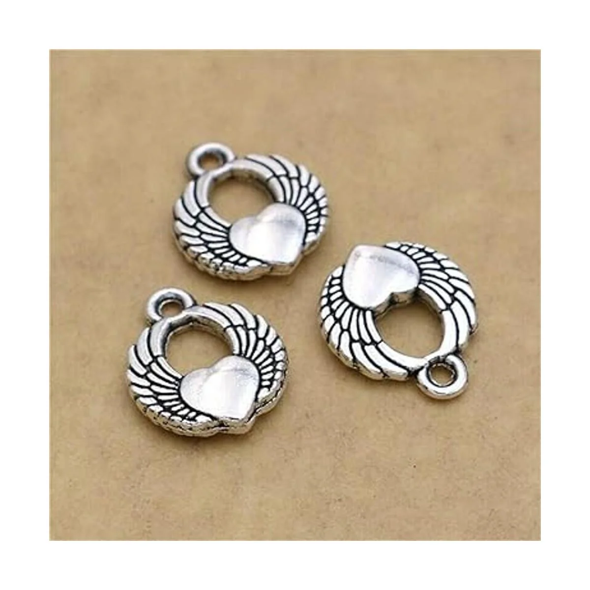 0.709 x 0.591 in corazón alas encantos ángel y ala corazón encantos antiguos plata tono colgante joyería