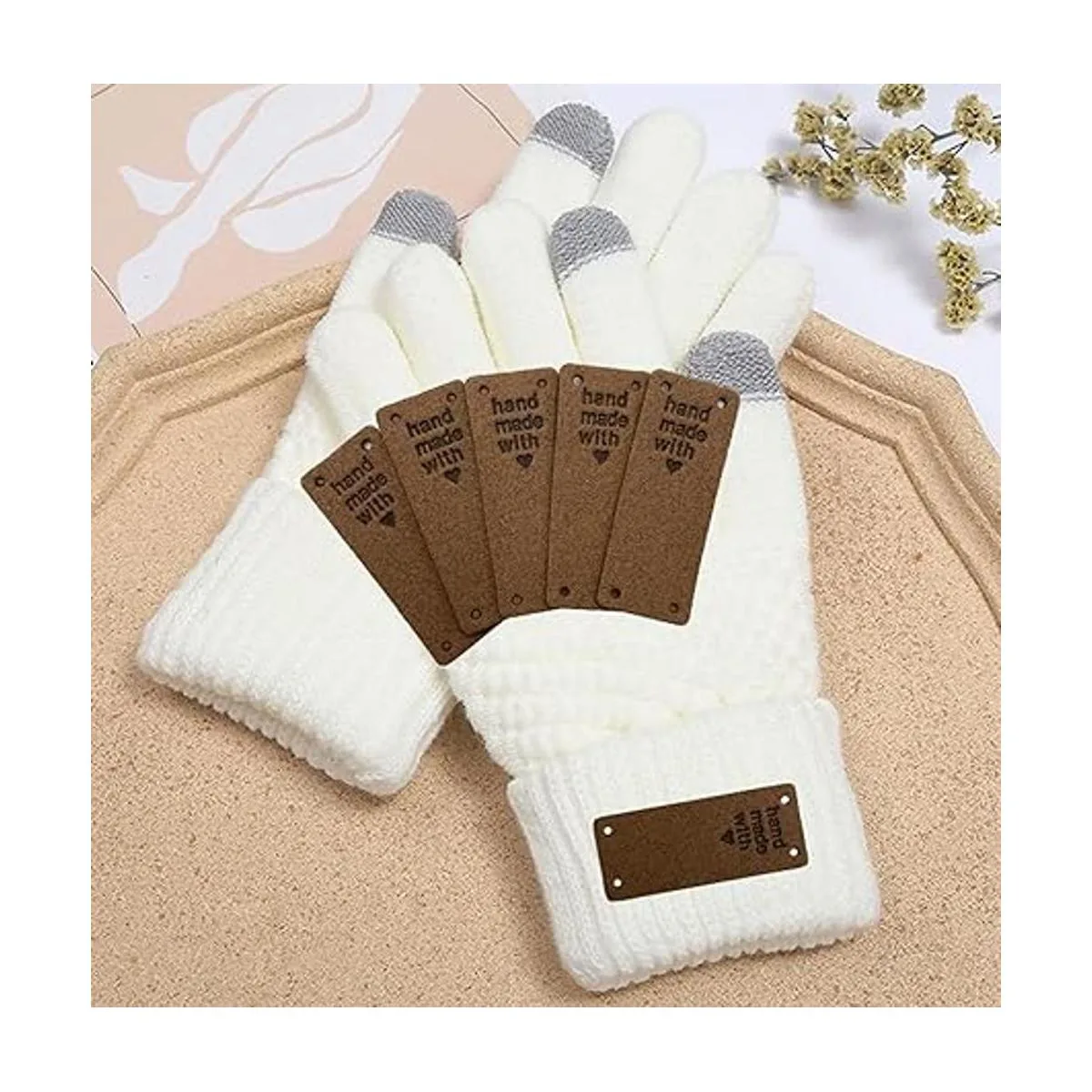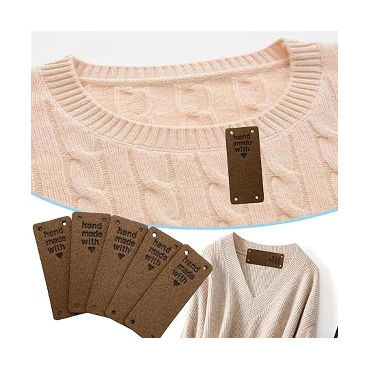 WiYould 40 etiquetas de piel sintética hechas a mano para coser en etiqueta hecha a mano en relieve, adorno de punto de ganchillo, vaqueros, bolsos, zapatos, sombreros, accesorios de ropa rosa, marrón oscuro