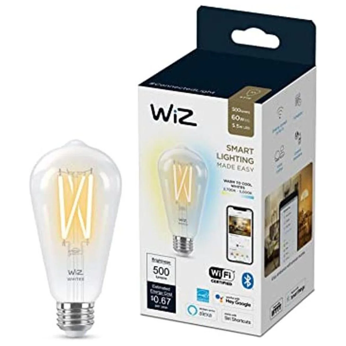 WiZ Connected Tunable White ST19 Lámpara de filamento Edison transparente, 2700K 5000K, control inteligente con aplicación WiZ, compatible con Alexa, Google Assistant y Siri, no requiere concentrador 603936