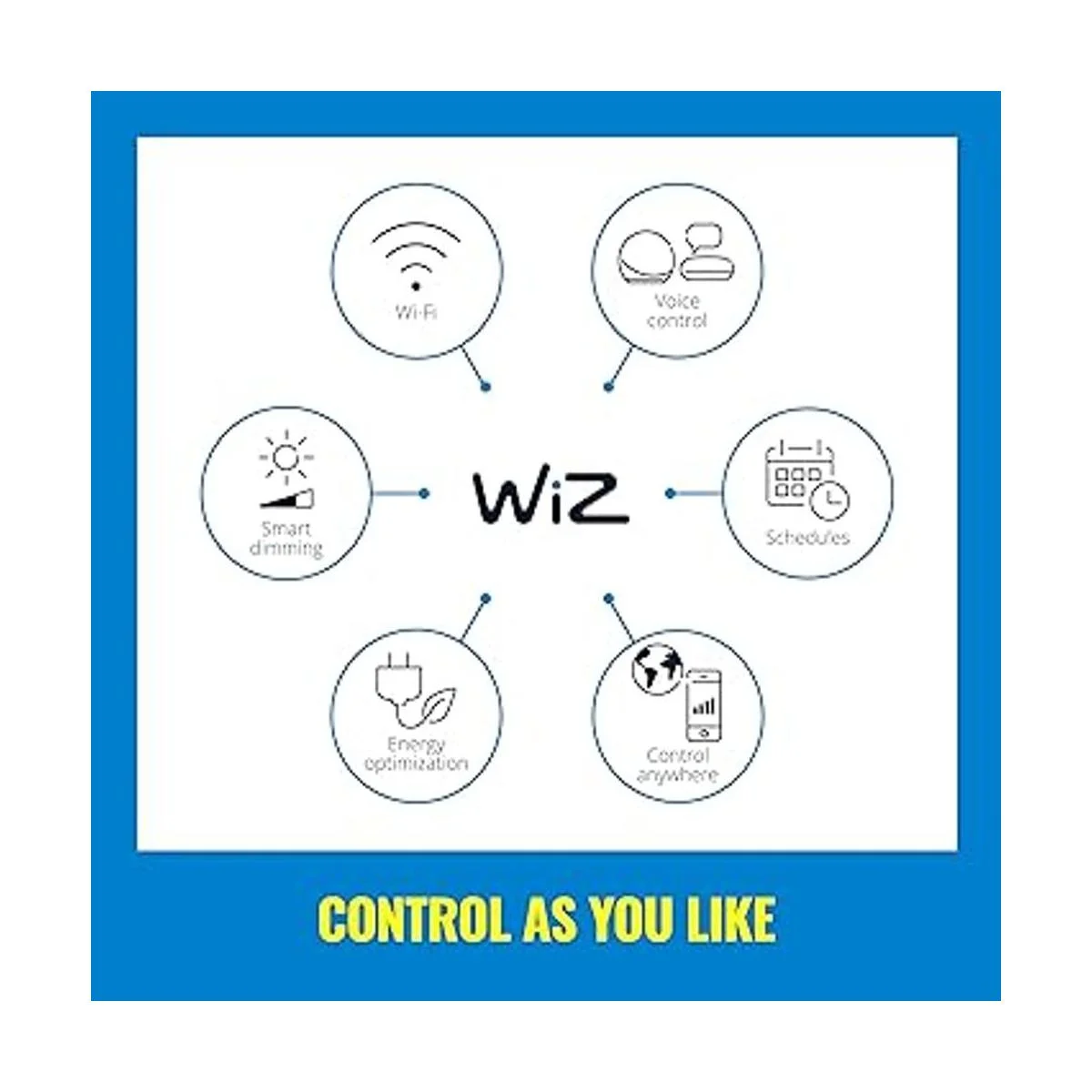 WiZ funciona con tu router WiFi existente de 2.4 GHz, no se necesita puerta de enlace adicional. Simplemente conecta tu nueva luz, descarga la aplicación WiZ y ya estás listo para usar