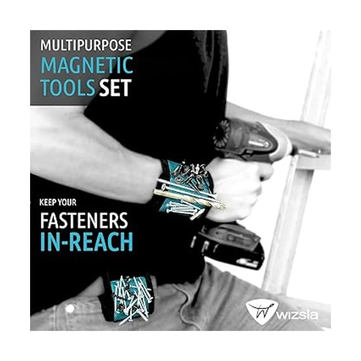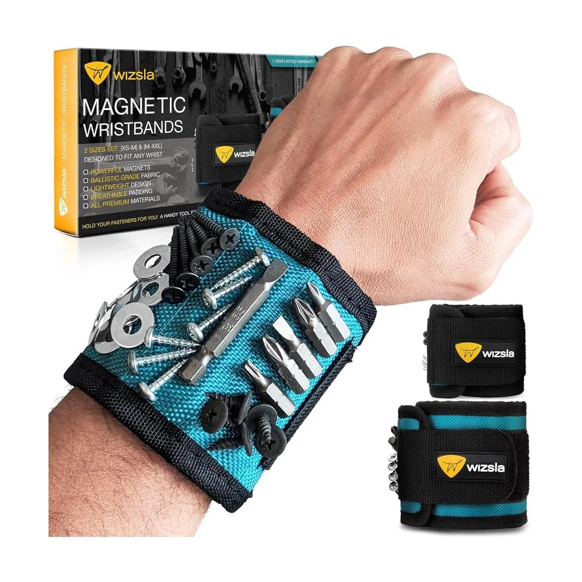 Wizsla Pulsera magnética para guardar tornillos, herramientas, juego de 2 tamaños, el mejor regalo único de Navidad para hombres, manualidades, papá, padre, marido, héroe, hombre o mujer azul