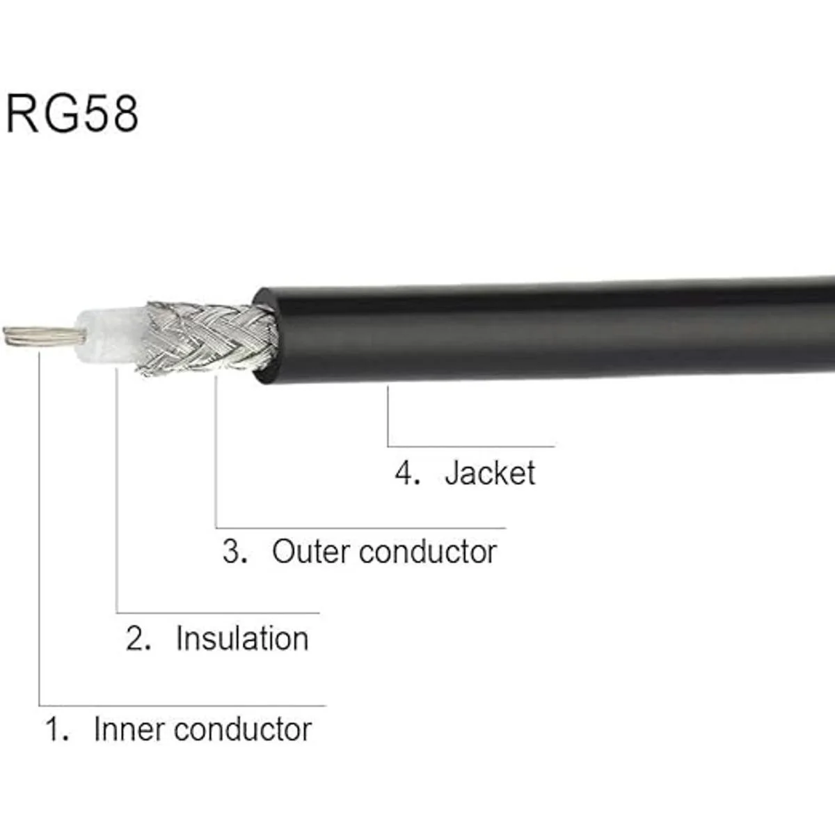Tipo de cable: Cable coaxial RG58, flexible y baja pérdida. Impedancia: 50 ohmios