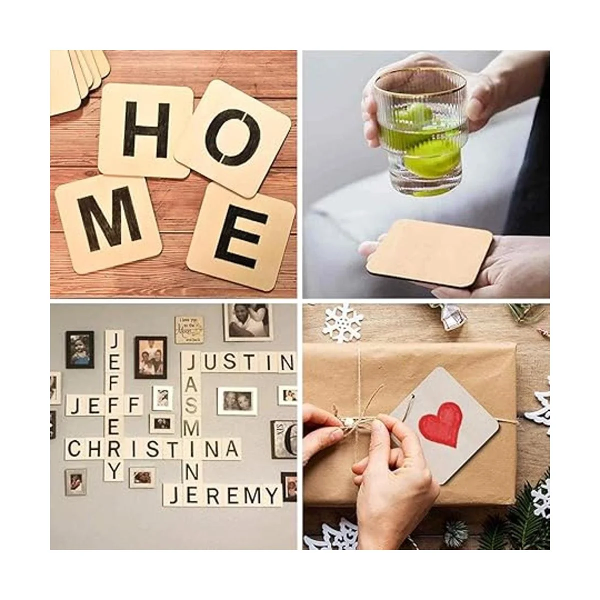 Cuadrados de madera para manualidades: se pueden utilizar para letras de Scrabble de fiesta, etiquetas de regalo, aviones de modelo, adornos de Navidad, accesorios de fotos, decoración de regalos u otros proyectos de fabricación de manualidades, y también como posavasos o mucho más.