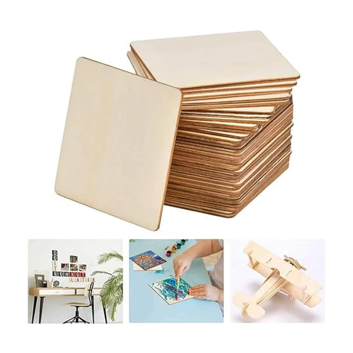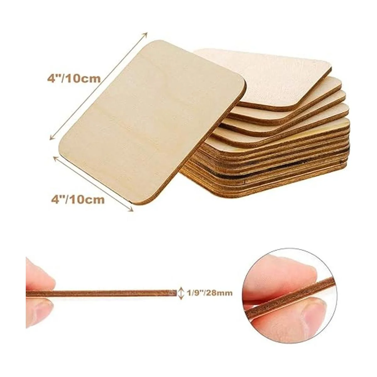 Cuadrados de madera: para proyectos de arte y manualidades, cuadrados de madera de 4 x 4, grosor: 0.1 pulgadas, suficiente para satisfacer tus necesidades de suministros de manualidades, es divertido tanto para niños como para adultos.