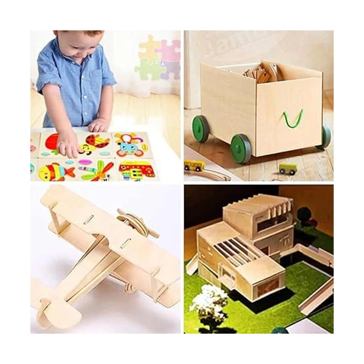 Azulejos cuadrados de madera: estas piezas cortadas con láser de azulejos de madera en blanco están diseñadas para ser cuadrados pero con esquinas redondeadas, lo que puede evitar el daño causado por ángulos afilados. Son especialmente adecuados para pintar entre padres e hijos, seguros para que tu familia juegue.