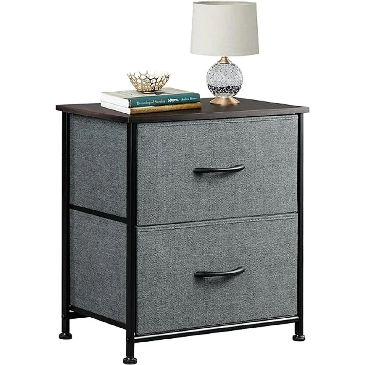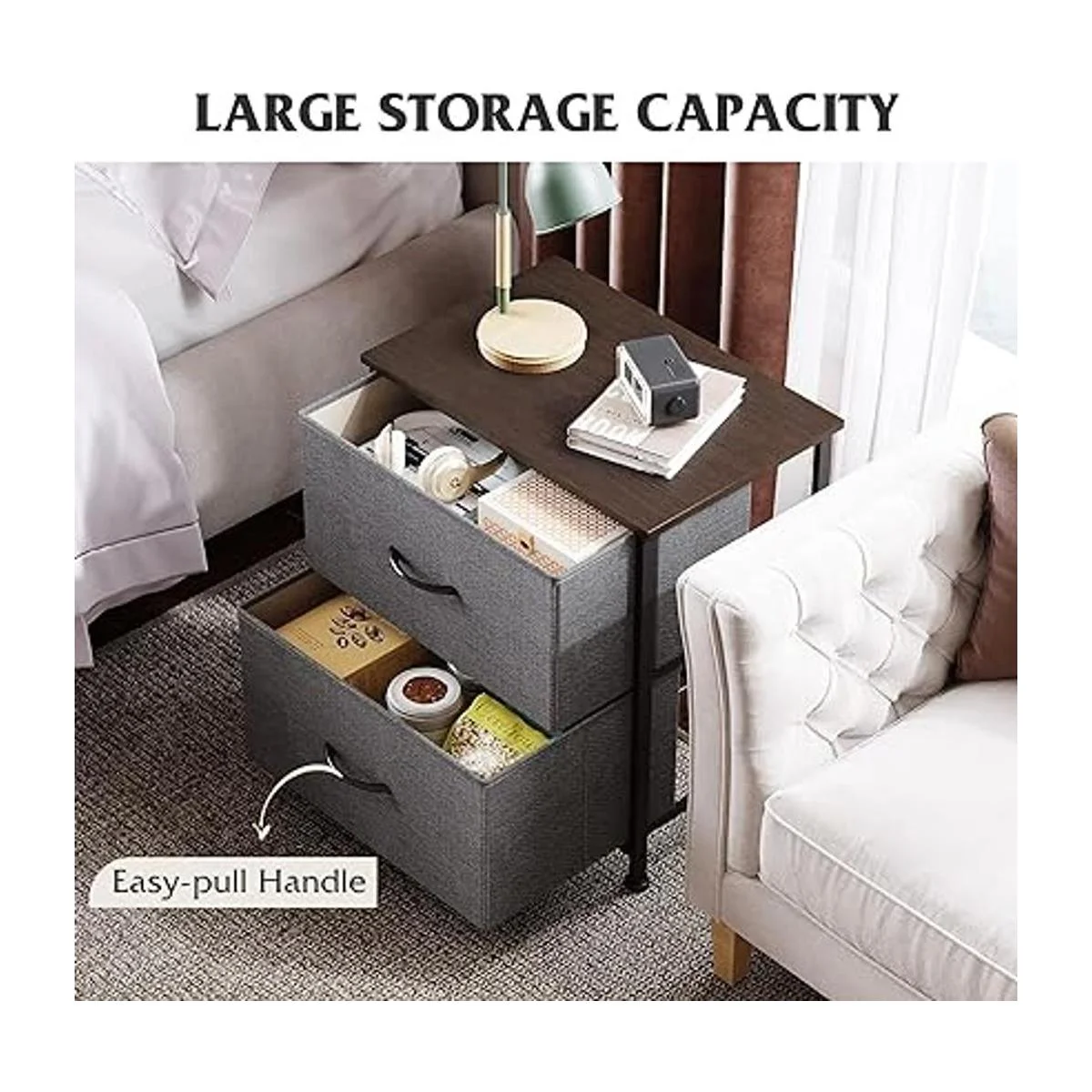 WLIVE Mesita de noche con 2 cajones de tela mesa