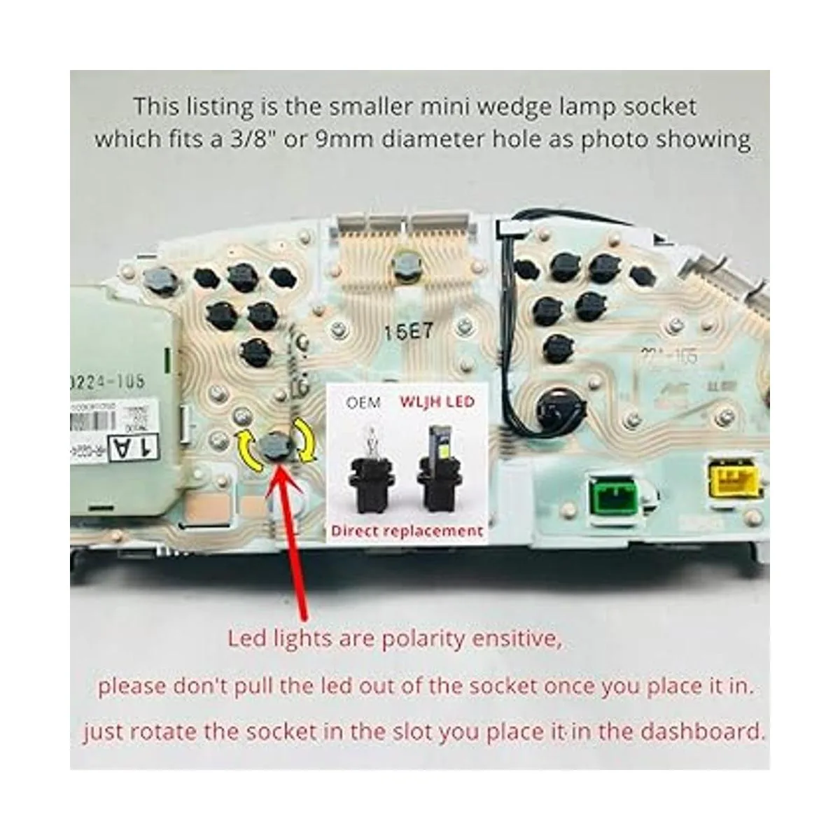 Fácil de instalar, las 74 luces LED son sensibles a la polaridad, no tires del LED fuera del enchufe una vez que lo coloques, simplemente gira el enchufe en la ranura en la que lo coloques en el salpicadero.