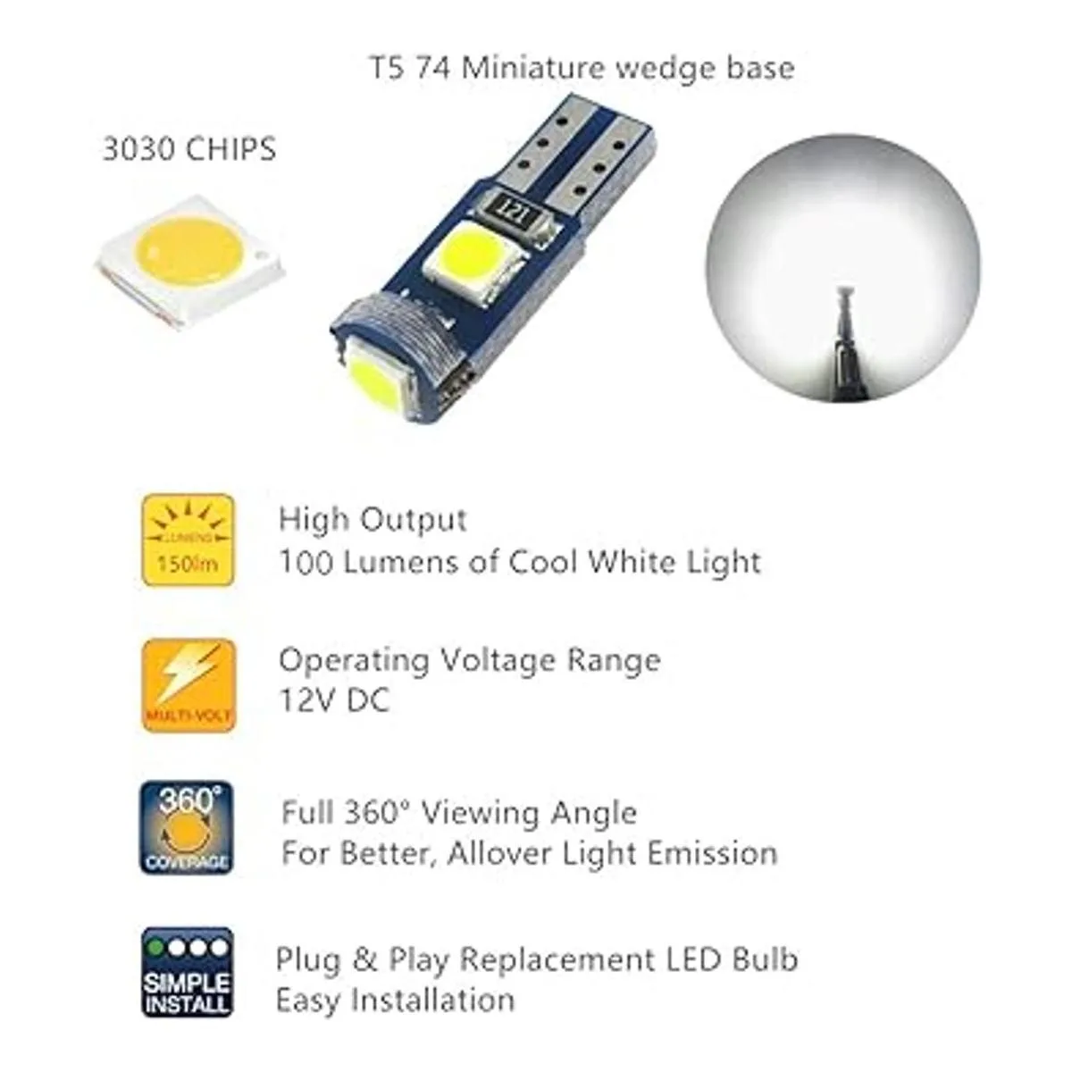 Alto brillo y regulable: 3 potentes 3030 SMD, 1 LED hacia arriba y 2 LED a los lados para extender bien la luz, 100 lm, 12 V, súper brillante, mucho mejor que el chipset 5050 2835 1210 3014 3528 SMD.