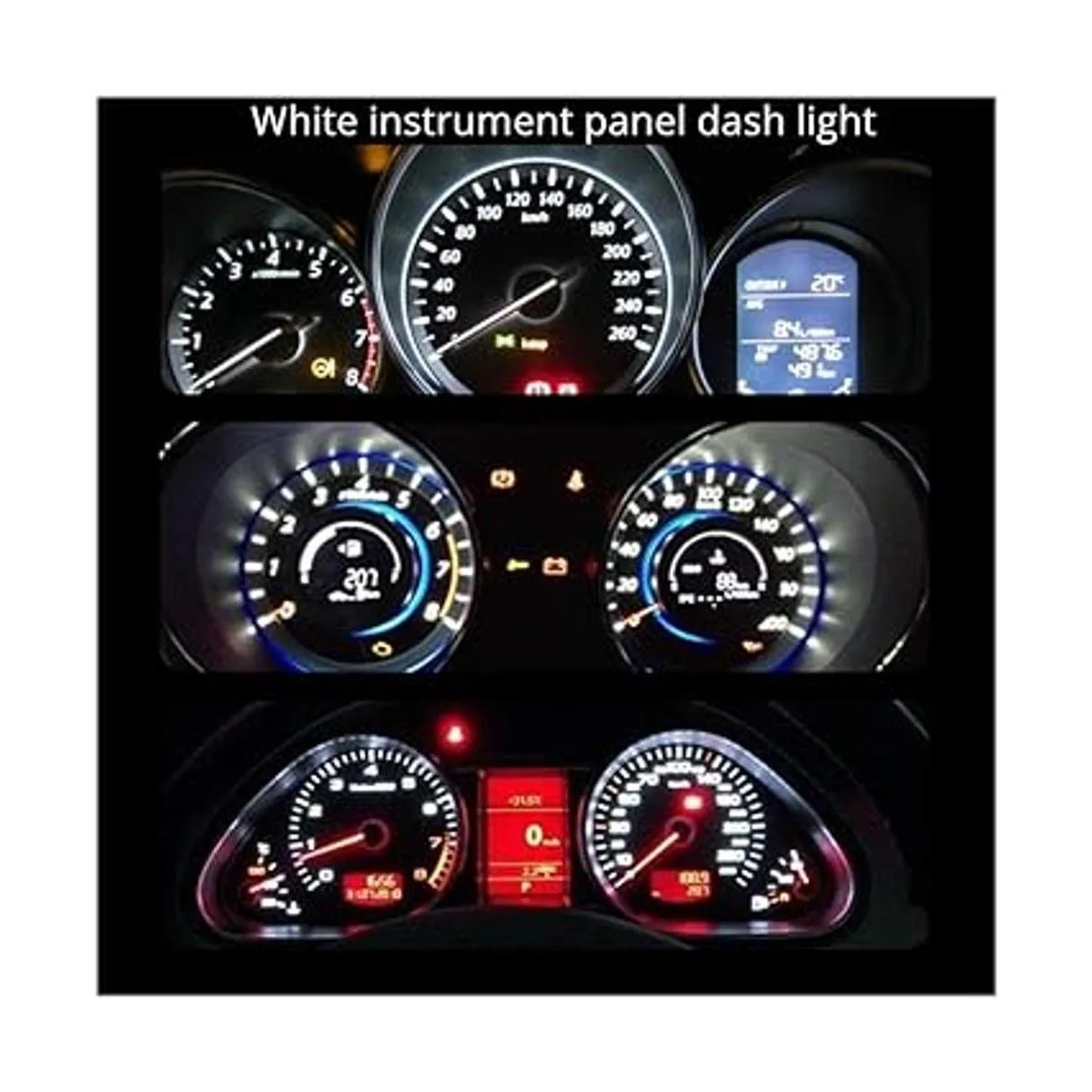 Varias aplicaciones: bombillas de salpicadero de coche para motocicleta, luz negra, luces de reloj, luces de cenicero, luces de marcación de radio, luces de encendido, luces de control de motor, control de transmisión, sujetar el cinturón de seguridad, luces intermitentes de freno de estacionamiento.