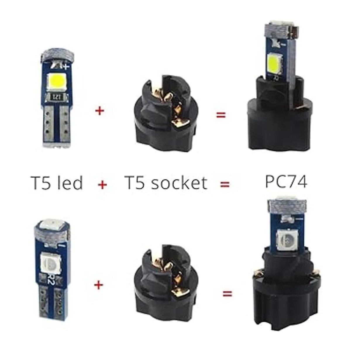 WLJH 74 Bombillas LED de luces de tablero superbrillantes T5 2721 37 70 286 de cuña PC74 Kits de luces de indicador del panel de instrumentos del automóvil, bombillas interiores de indicador de cambio