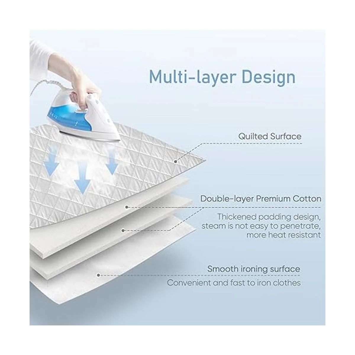 Alfombrilla de planchado gruesa con diseño multicapa: almohadilla de planchado de último diseño, mejora el grosor, el peso aumentó un 20. Acolchado de algodón grueso de doble capa, el vapor no es fácil de penetrar, más resistente al calor.