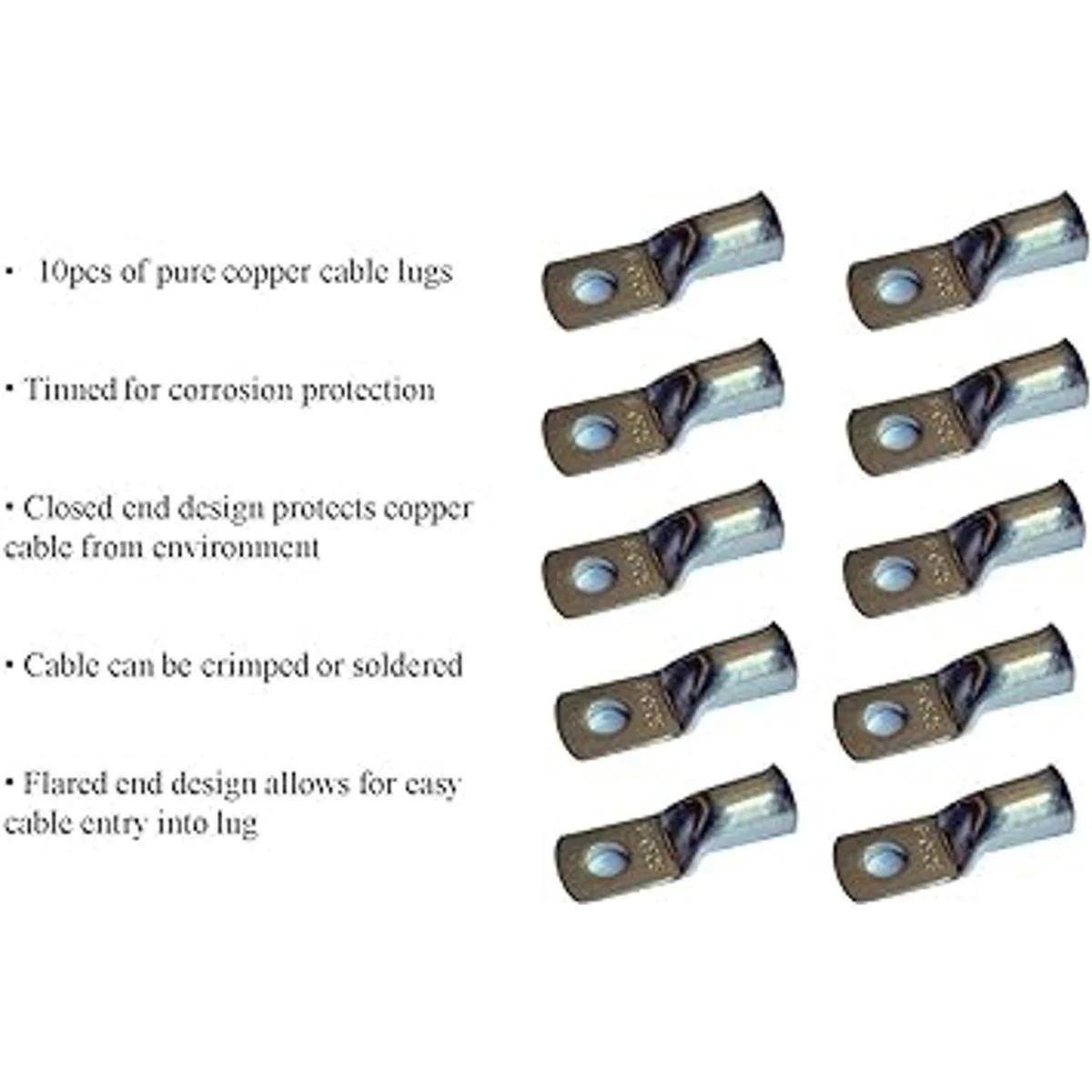 Copper Cable Lug Description: pure copper with an exterior tin coating for corrosion protection excellent for outdoor and marine applications. Cable lug utilizes a closed end design to protect cable from outdoor environment i.e. moisture, acid, and solvents. Cable lug can be crimped or soldered. Flared barrel end design for easy entry of cable into the cable lug.