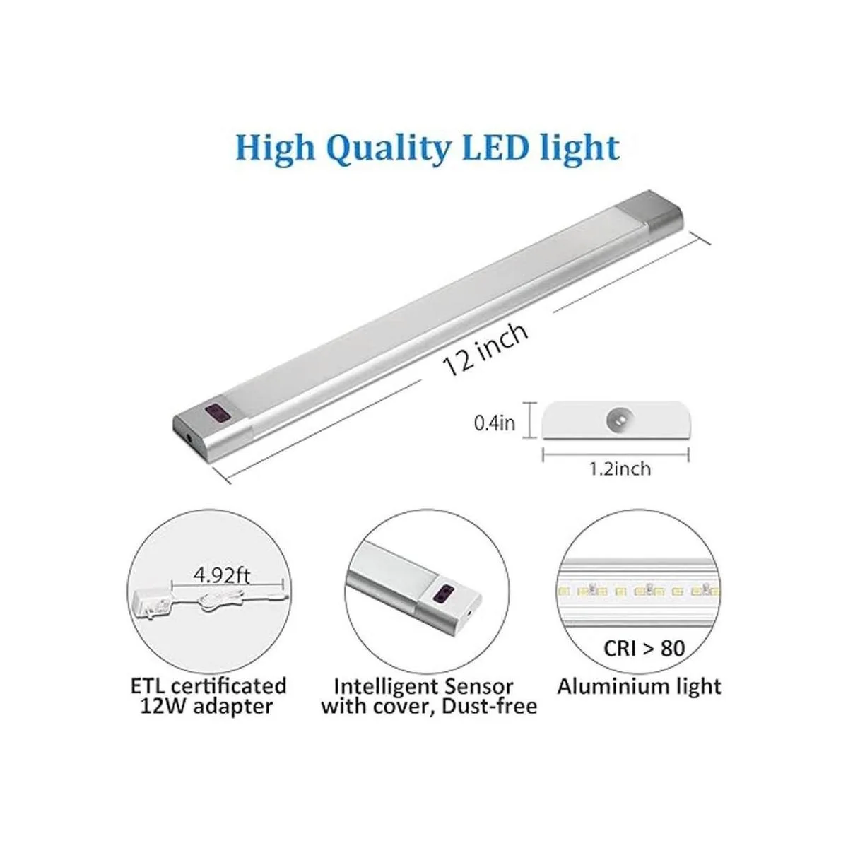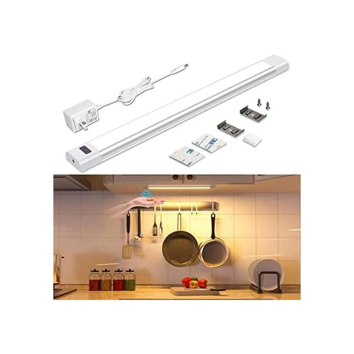 WOBANE Barra de luz LED enchufable con adaptador ETL, activada por onda manual, kit de luz de gabinete de 12 pulgadas para cocina, estante, estantería, exhibición, mostrador, blanco cálido de 2700 K, regulable, 1 panel