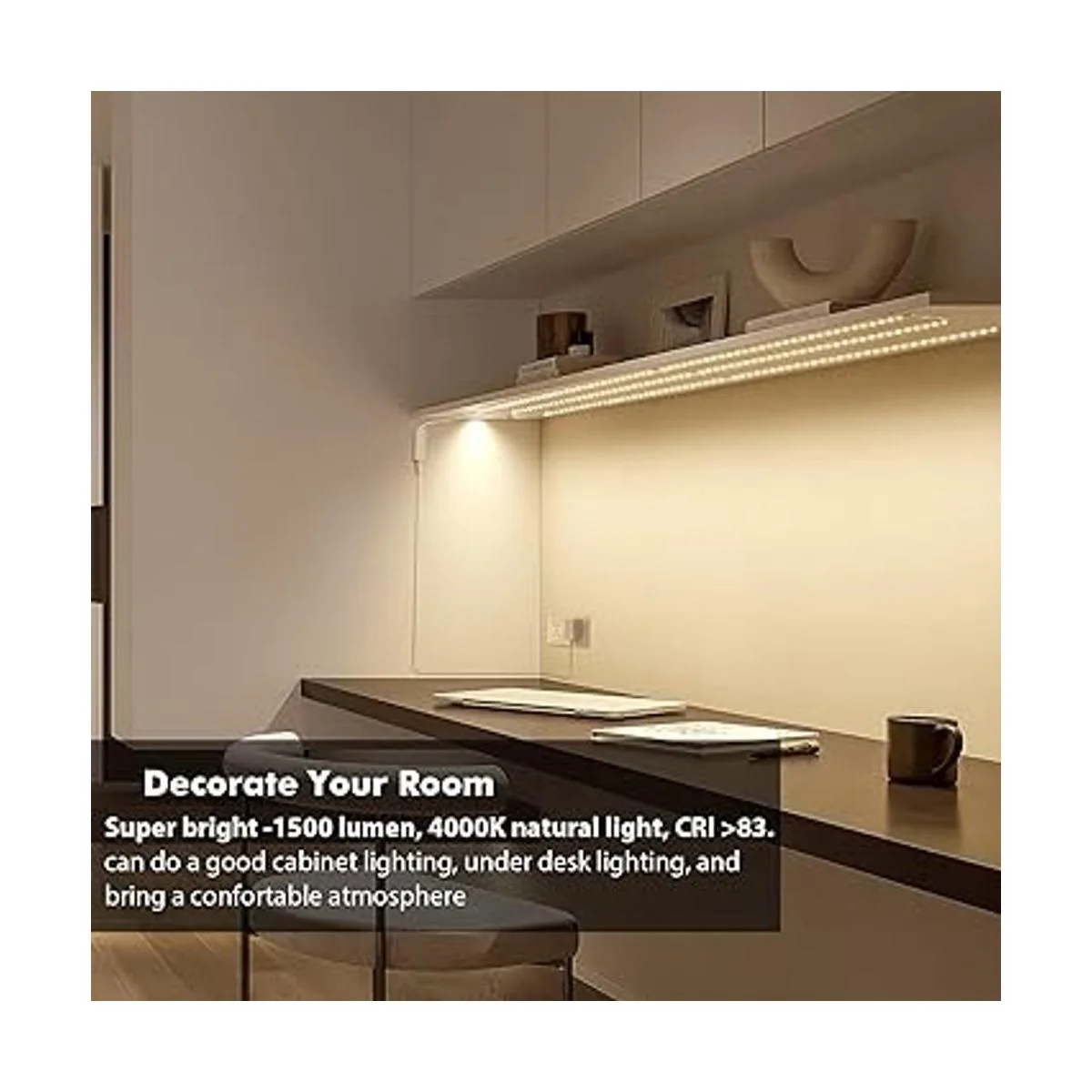 Super brillante y brillo ajustable: las luces LED superbrillantes para gabinetes ofrecen un total de 1500 lúmenes, vienen con regulador de intensidad RF para ajustar el brillo. CRI 82, luz diurna de 4000 K, proporciona iluminación de cocina de alta calidad