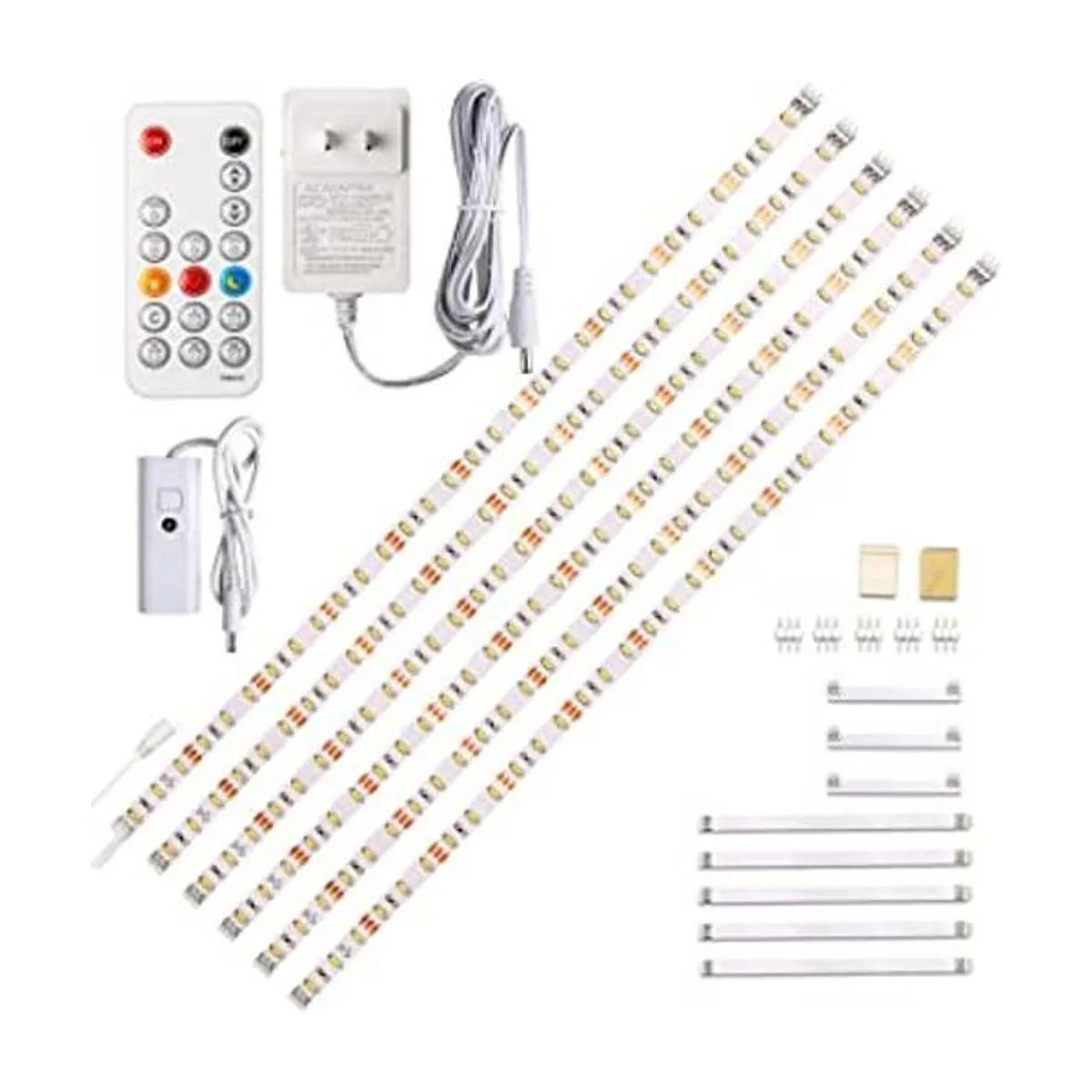 Tira de luz LED de bricolaje: 6 tiras precortadas, total de 9.8 pies, muchos tipos de opciones de conexión, gran manera de actualizar tus armarios, armario, escritorio, parte trasera de TV, estantería, cama, armario, armario, mostrador, vitrina, etc