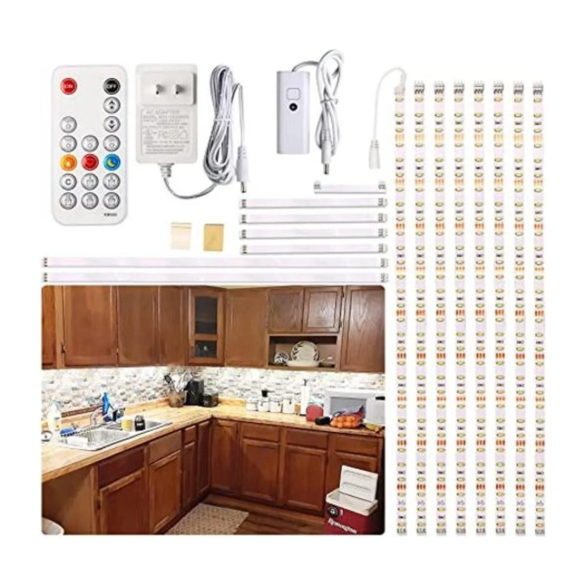 Súper brillante y brillo ajustable: las luces LED superbrillantes para armario ofrecen un total de 1900 lúmenes, vienen con regulador RF para ajustar el brillo, CRI82, proporciona iluminación de cocina de alta calidad