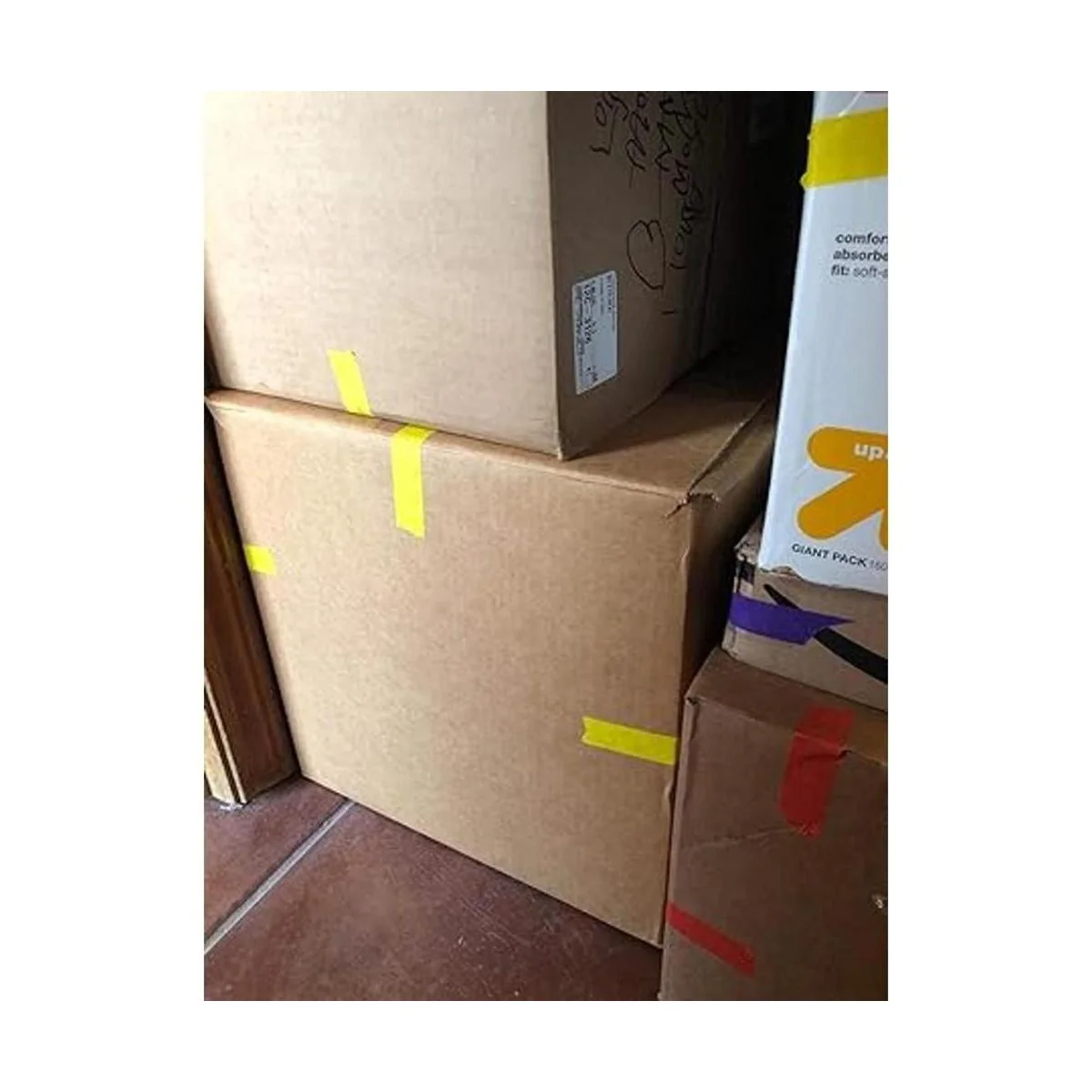Ideal para marcar cajas de mudanza: los colores brillantes y llamativos y el gran adhesivo de esta cinta adhesiva de colores son útiles para etiquetar cajas móviles. Se puede dispensar o rasgar a mano para codificar por color las esquinas u otras áreas de las cajas necesarias. Las áreas de código de color de una caja móvil ayudan al mover a identificar su paradero y colocarlo en el lugar correcto de la casa.