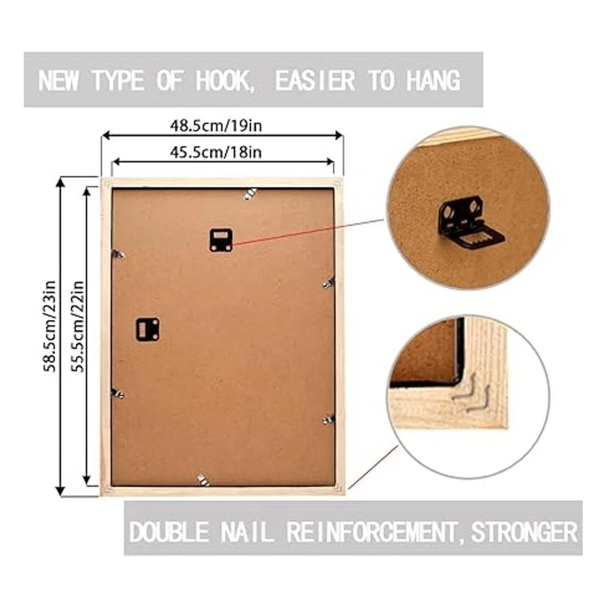 Pantalla vertical y horizontal: viene con pestañas de fácil apertura en la parte posterior para un fácil acceso. Hay una placa trasera de densidad MDF dentro de los marcos para mantener tus obras de arte lejos de la humedad y con un aspecto genial durante años. El marco se suministra con ganchos de pared vertical y horizontal. Se puede colgar en la pared horizontal o verticalmente.